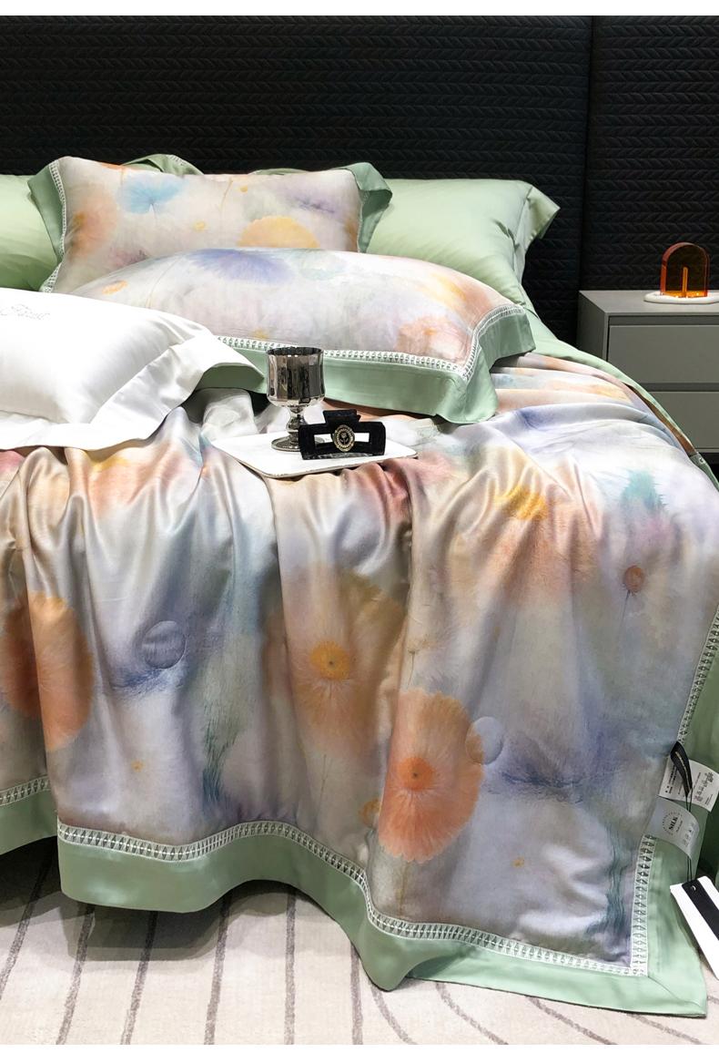 黑白森林2024款 50X50S高支天丝棉数码印花四件套天丝全棉,格伦黄,格伦绿,若瑶灰,羽笛蓝