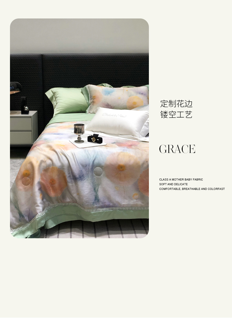 (总)黑白森林 2026新款天丝印花夏被四件套系列,觅羽-粉,觅羽-绿,慕颜,情愫-灰,如愿,薇宁