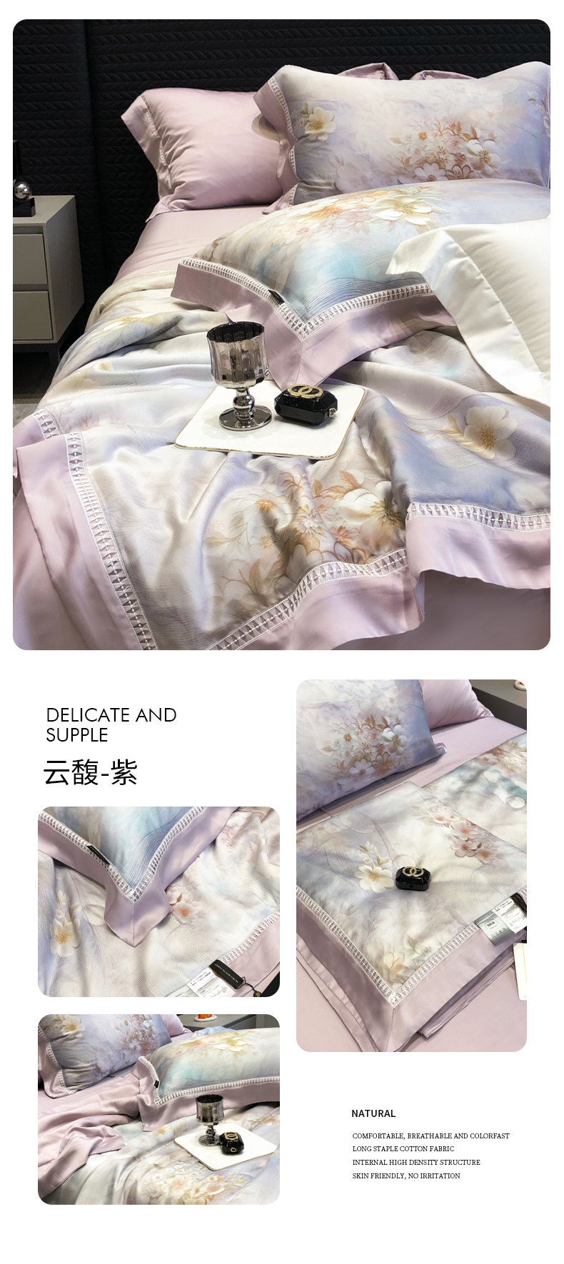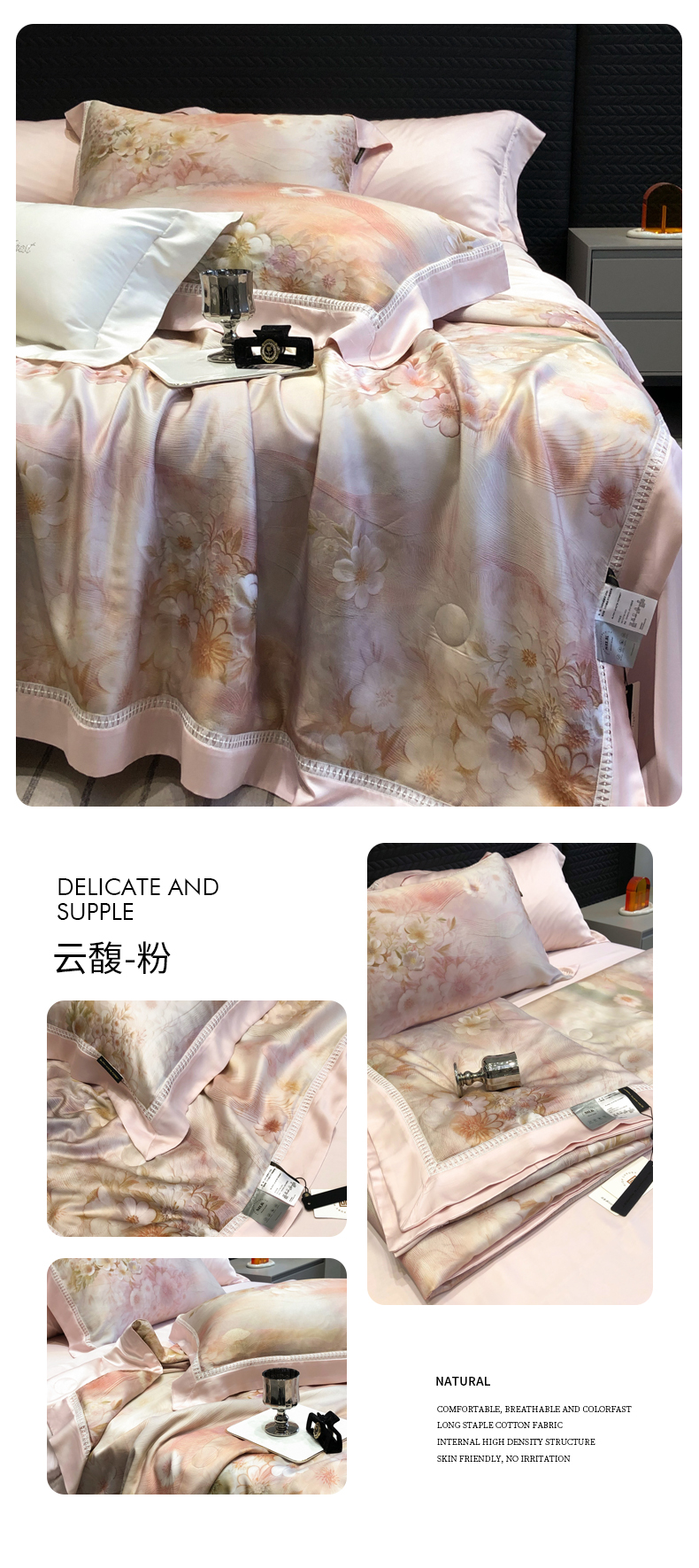 (总)黑白森林 2026新款天丝印花夏被四件套系列,邂逅-粉,邂逅-灰,云馥-粉,云馥-紫,紫嫣
