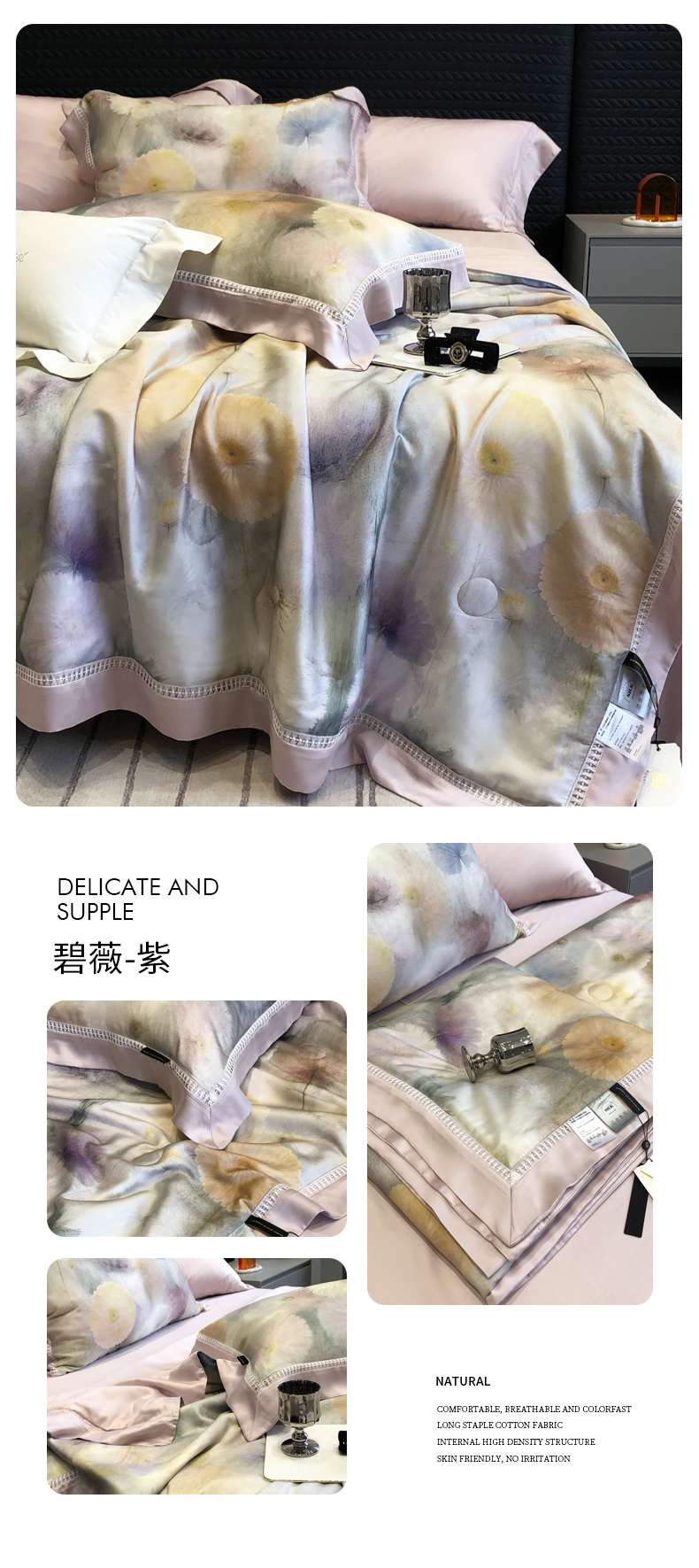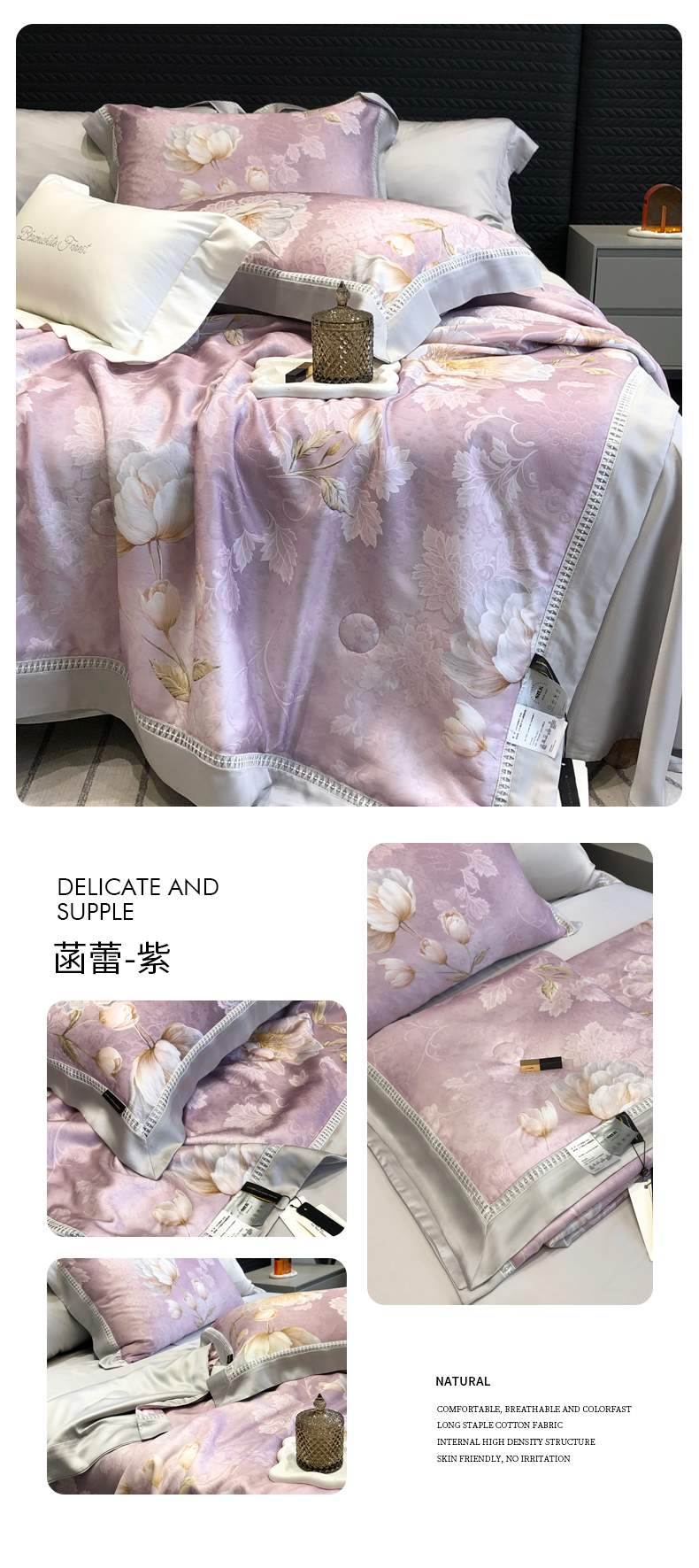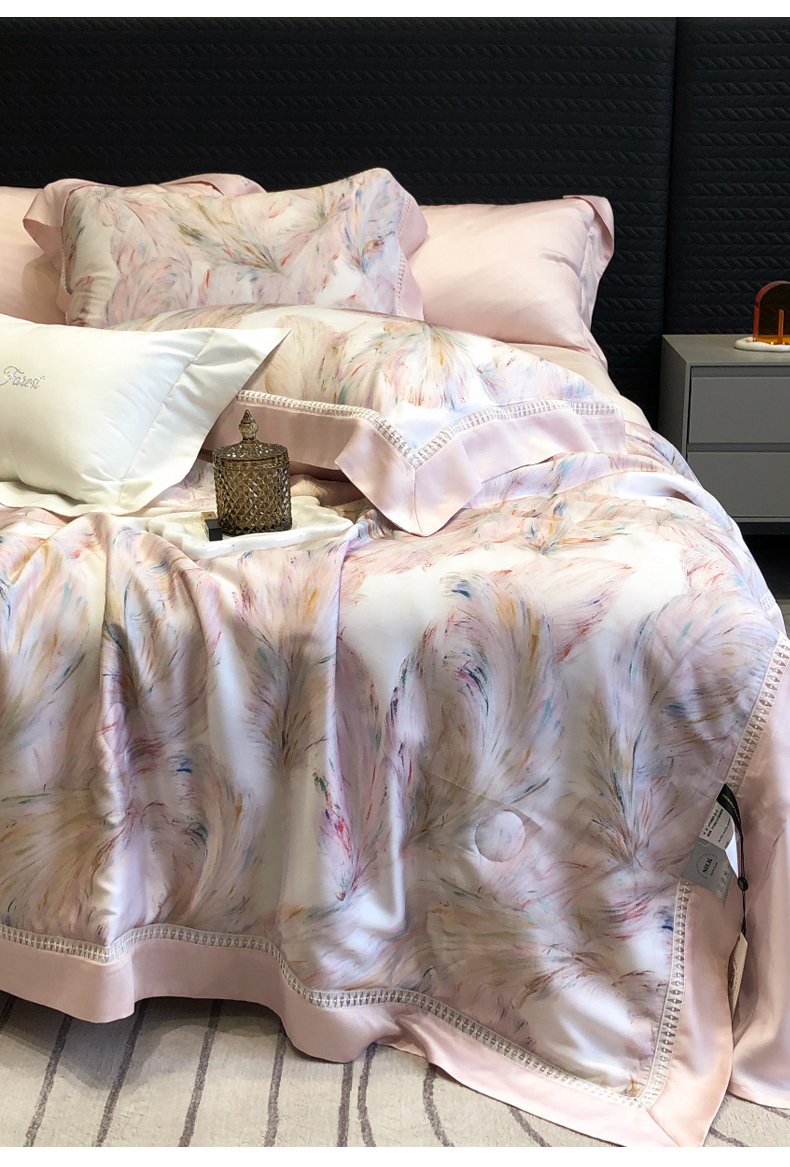 (总)黑白森林 2026新款天丝印花夏被四件套系列,邂逅-粉,邂逅-灰,云馥-粉,云馥-紫,紫嫣