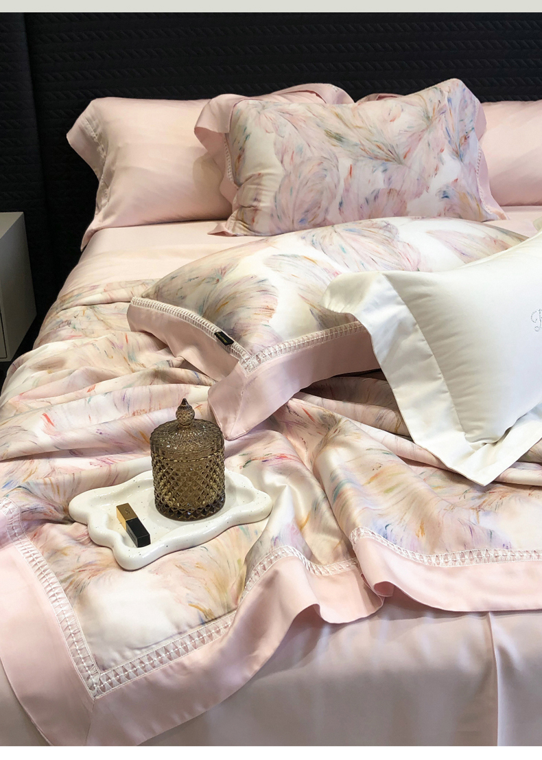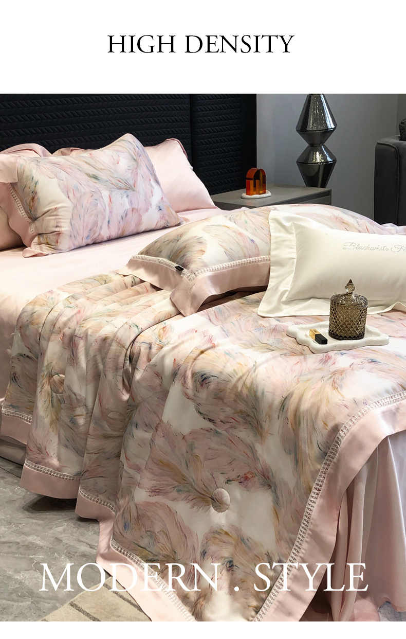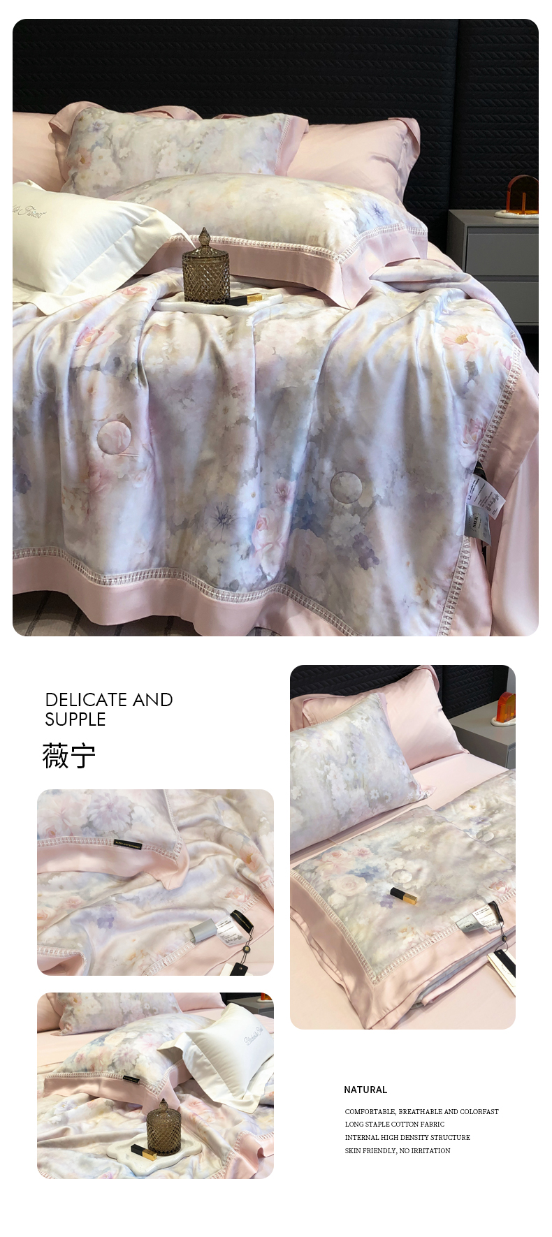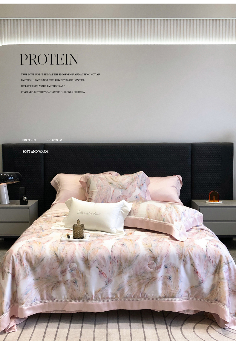(总)黑白森林 2026新款天丝印花夏被四件套系列,邂逅-粉,邂逅-灰,云馥-粉,云馥-紫,紫嫣