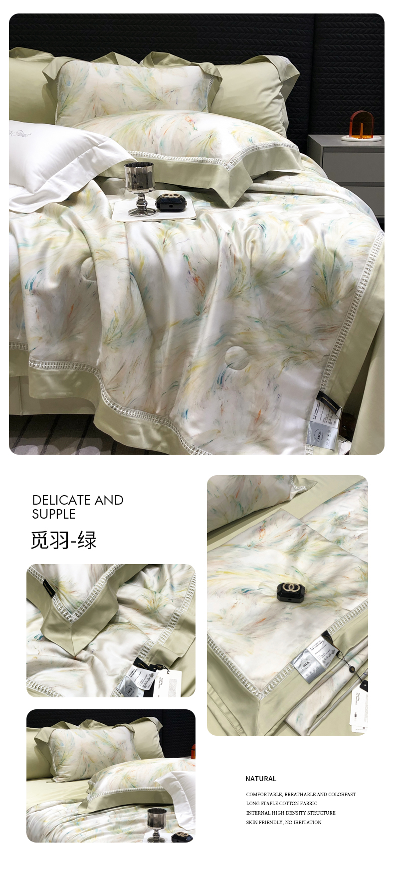 黑白森林2024款 50X50S高支天丝棉数码印花四件套天丝全棉,格伦黄,格伦绿,若瑶灰,羽笛蓝