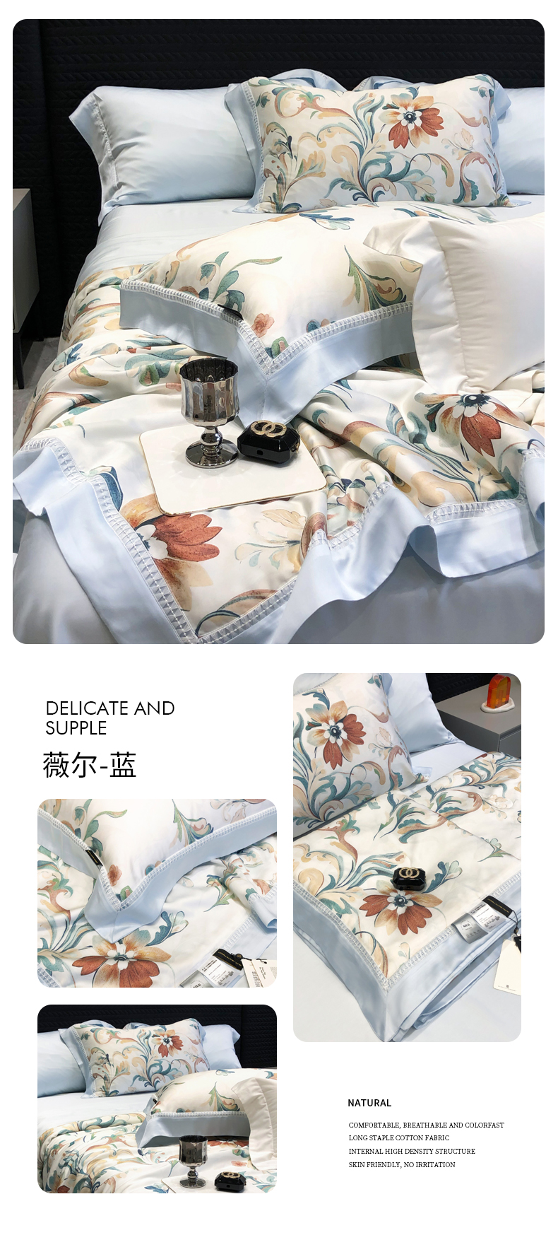 黑白森林2024款 50X50S高支天丝棉数码印花四件套天丝全棉,伊芙琳-粉,伊芙琳-蓝