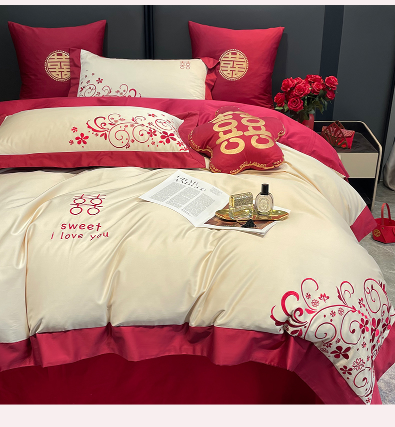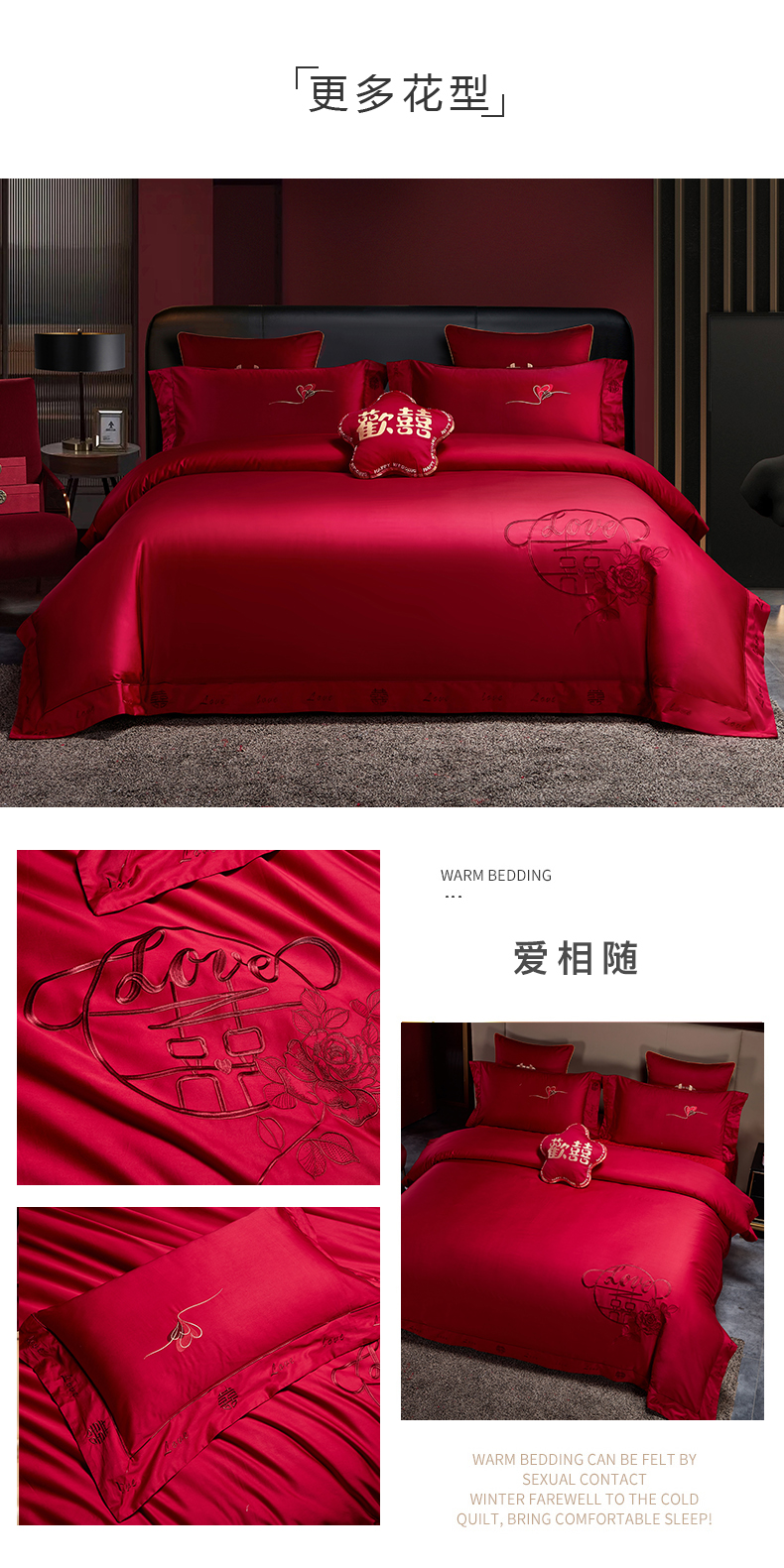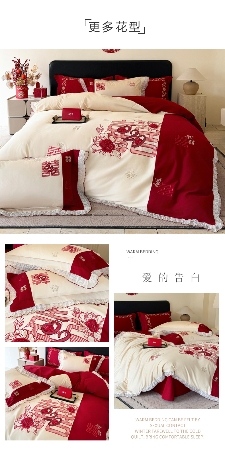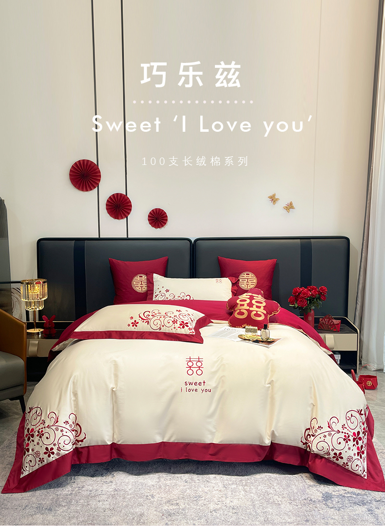 (总)甜咪咪婚庆 2025新款50支长绒棉全棉婚庆床单床盖四件套多件套刺绣工艺,洛可可,爱恋小熊,爱意久久,多子多福,花田喜事,节节高升,克拉恋人,浪漫情怀,怦然心动红,怦然心动玉,甜心玫瑰,温莎公主,伊甸园,醉红妆