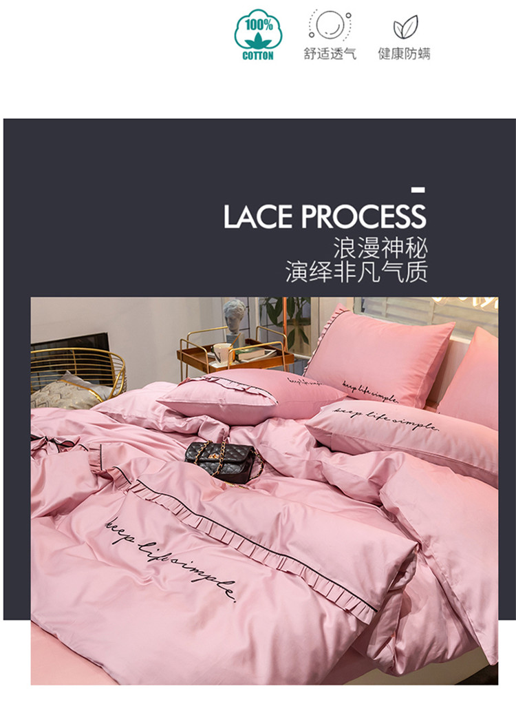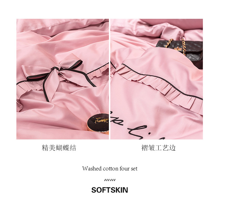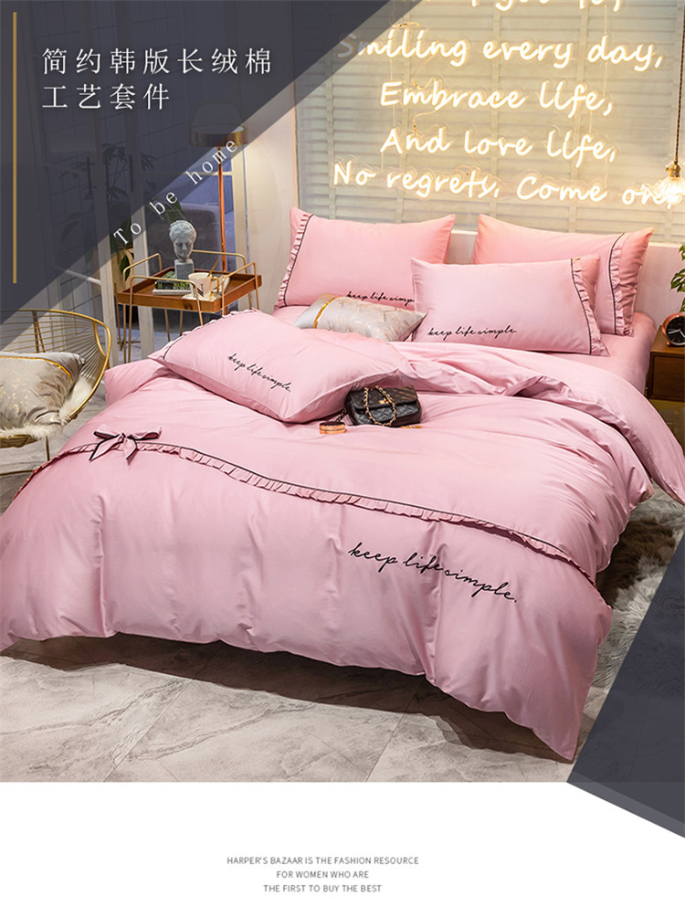 商品名称:娇逸家纺 201960长绒棉简韩版安妮系列四件套 浅粉