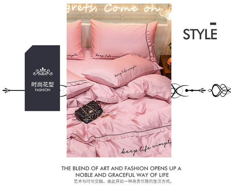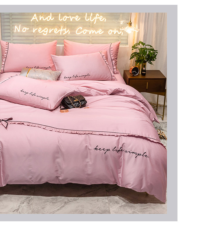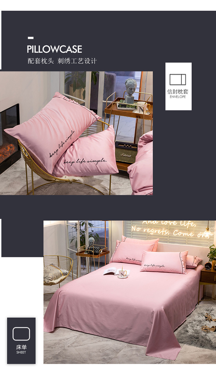 娇逸家纺 201960长绒棉简韩版安妮系列四件套 浅粉