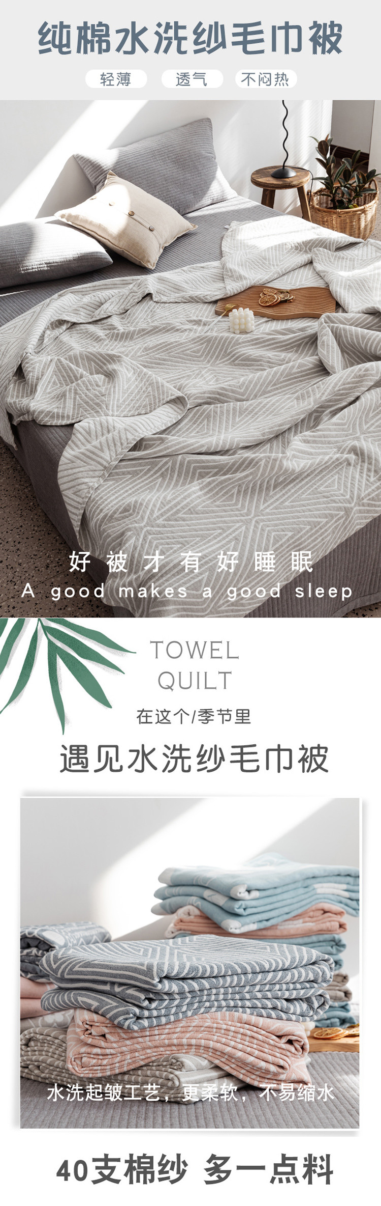 商品名称:朴尔 2020年新款加厚三层水洗棉全棉纱布毛巾被 等边三角-浅灰