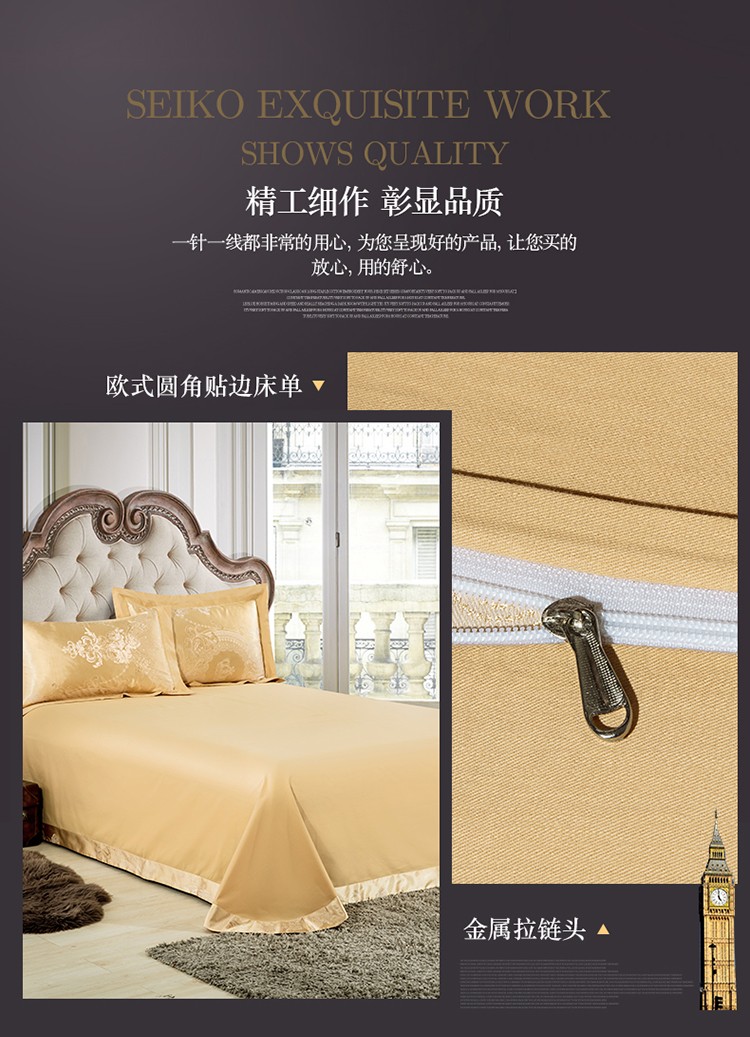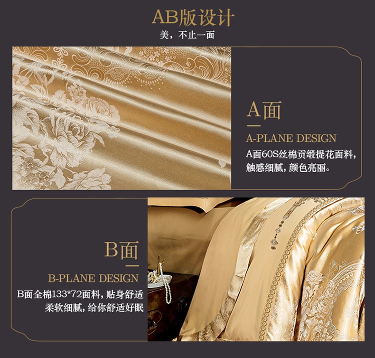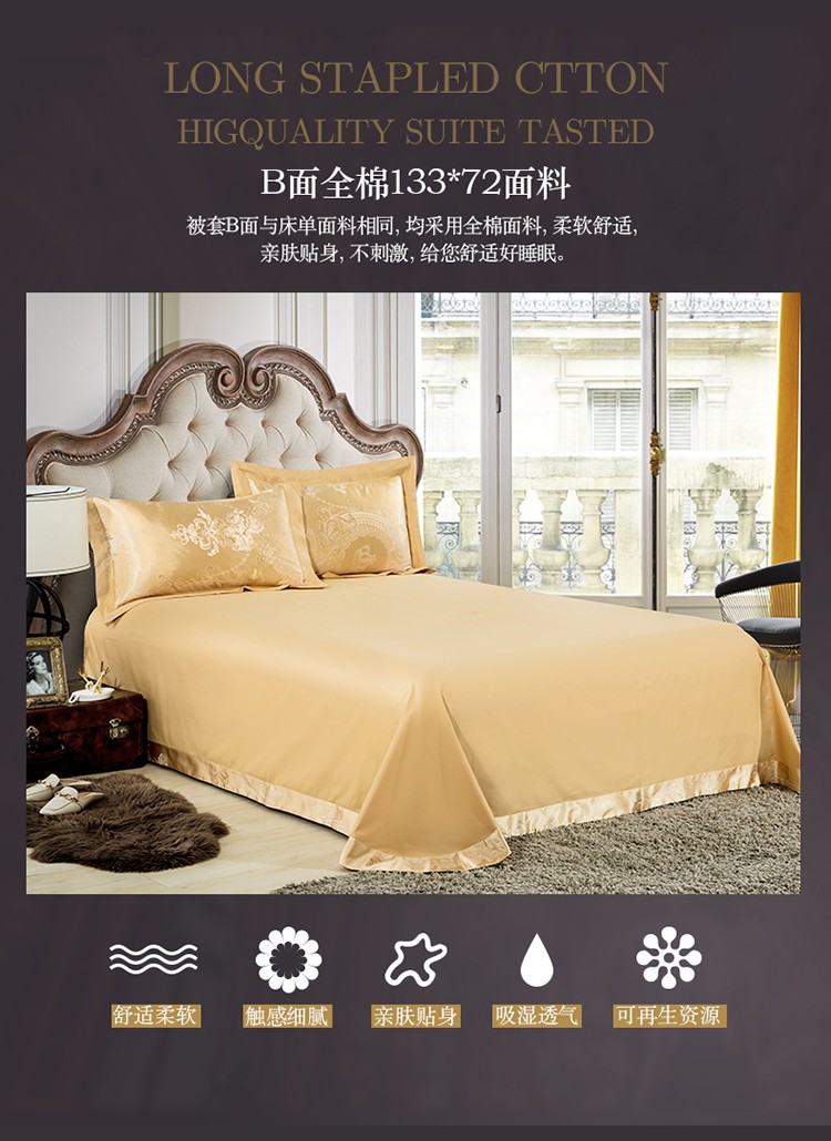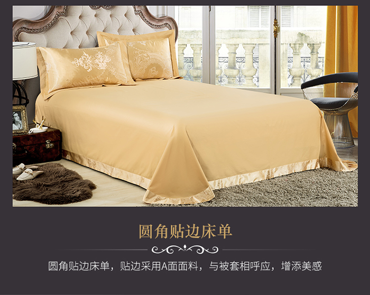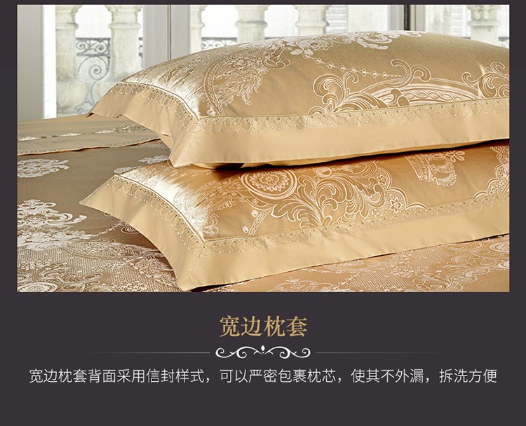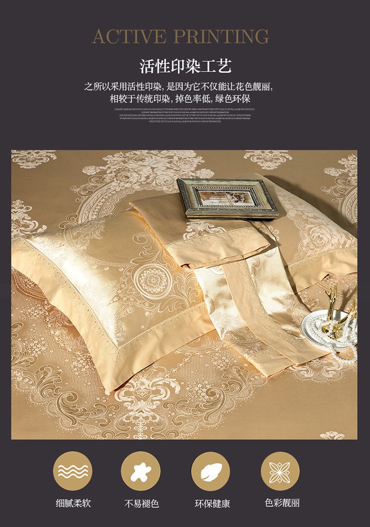 柔觉家纺 天丝刺绣贡缎提花全棉四件套,科西利亚-金色