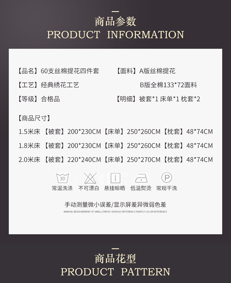 商品名称:60支丝棉贡缎提花经典绣花