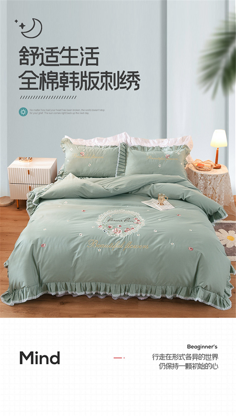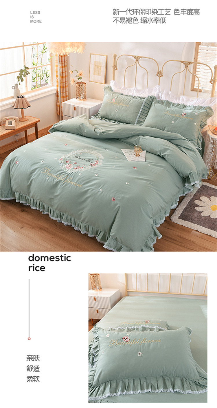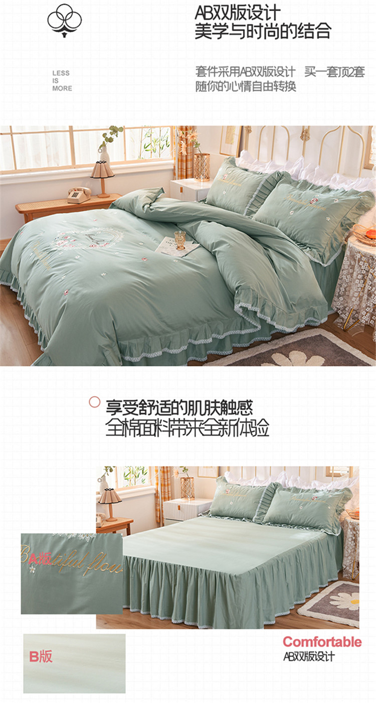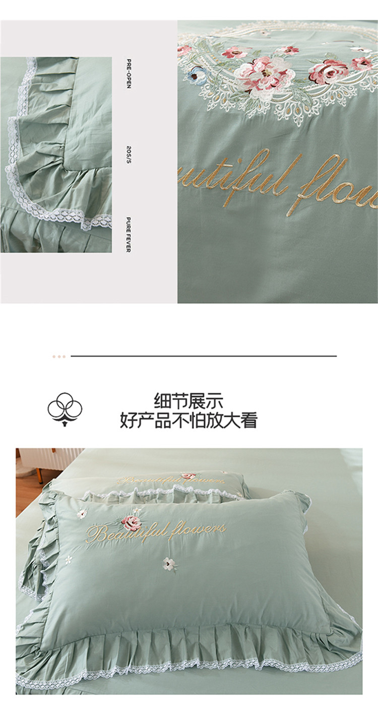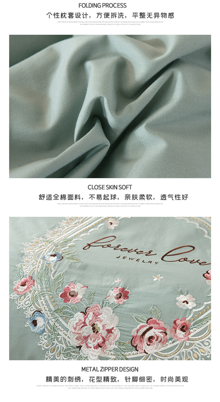 (总)迪欧芙 2023新款纯棉全棉水洗棉刺绣工艺款四件套-艾薇,艾薇-粉,艾薇-绿,艾薇-奶油白