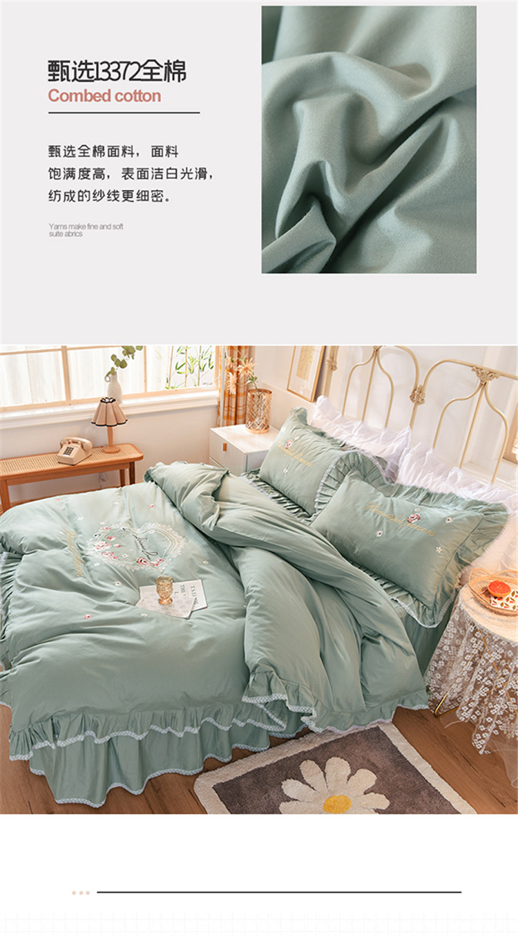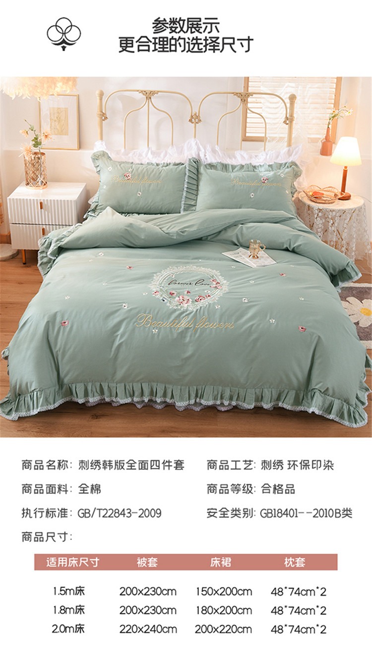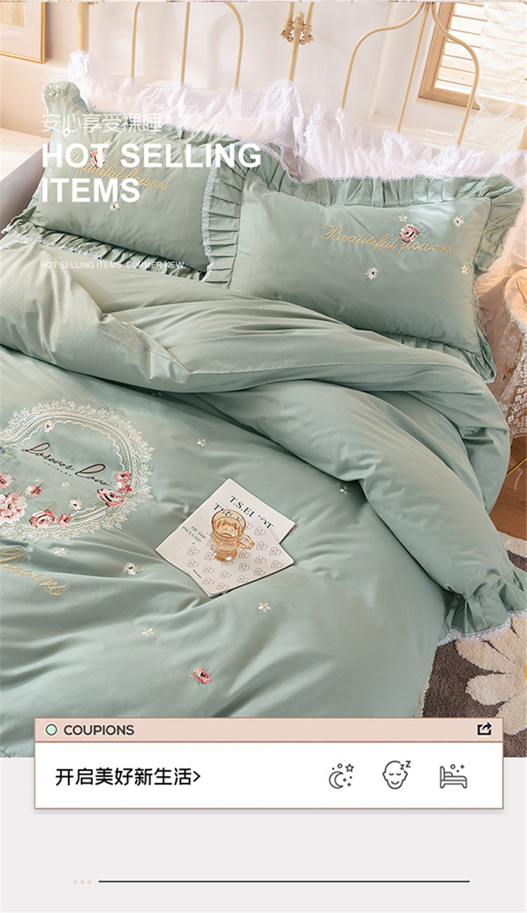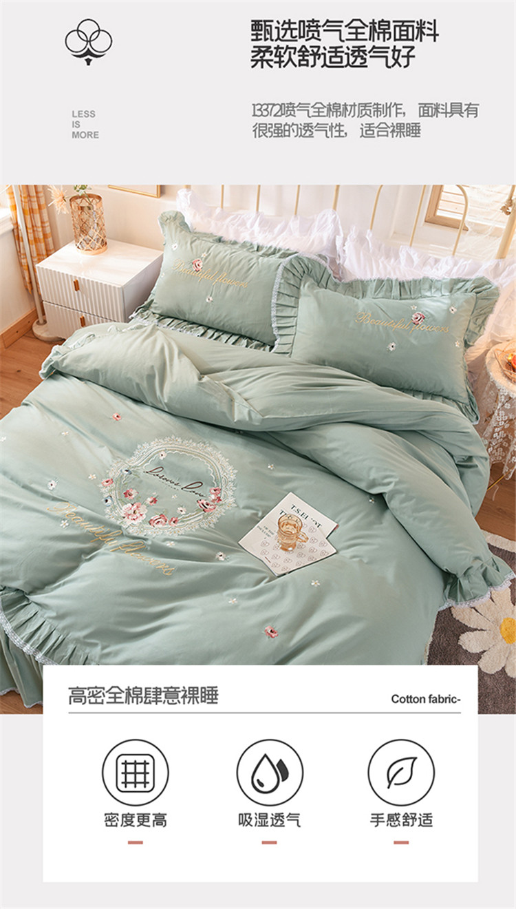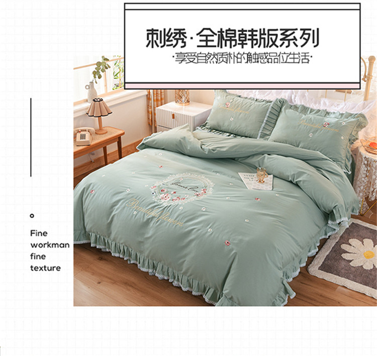(总)迪欧芙 2023新款纯棉全棉水洗棉刺绣工艺款四件套-艾薇,艾薇-粉,艾薇-绿,艾薇-奶油白