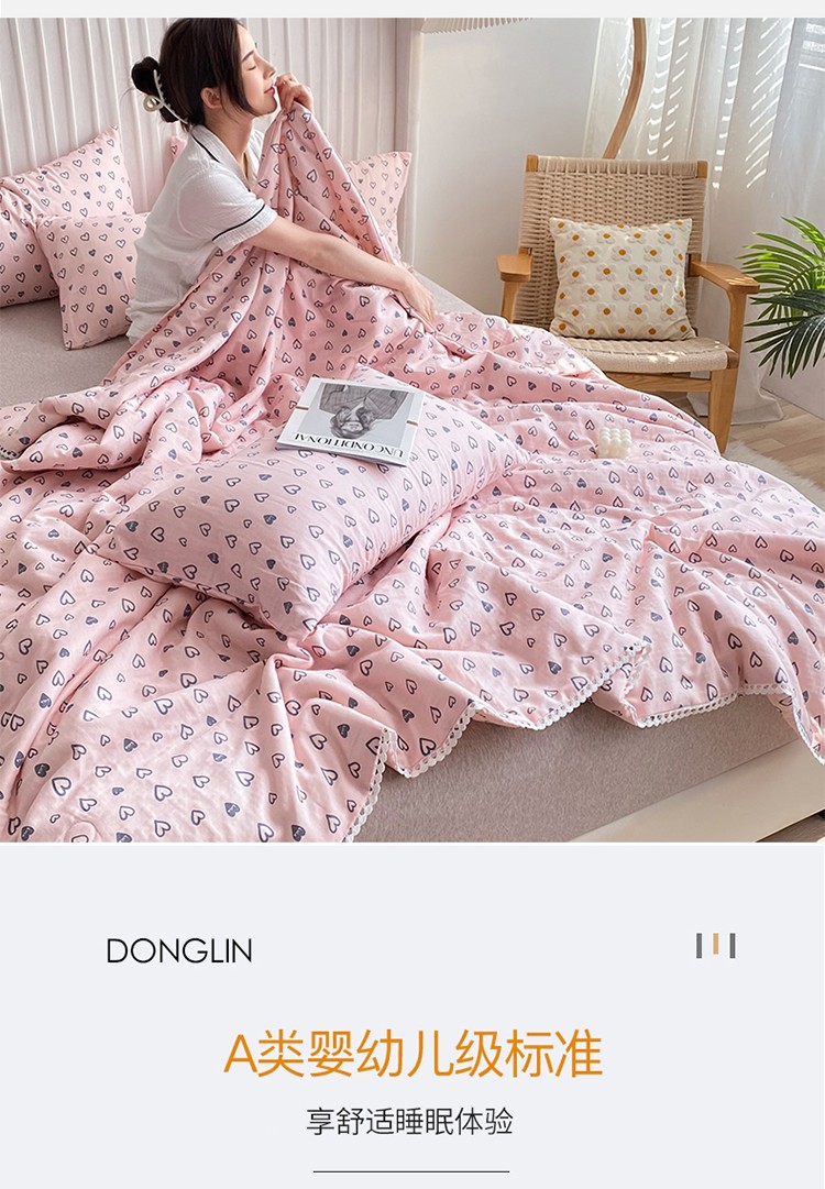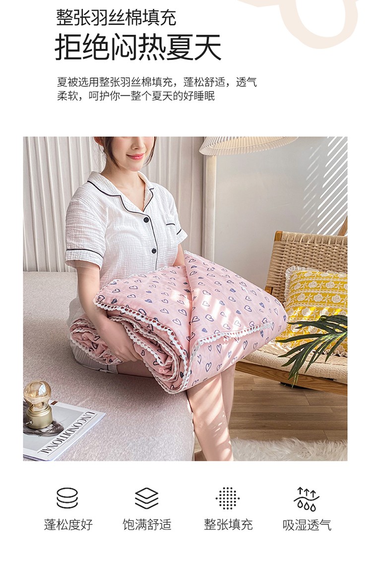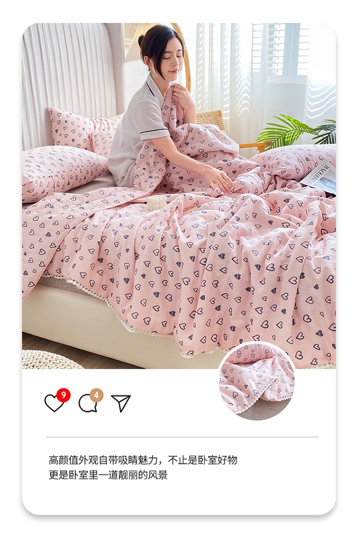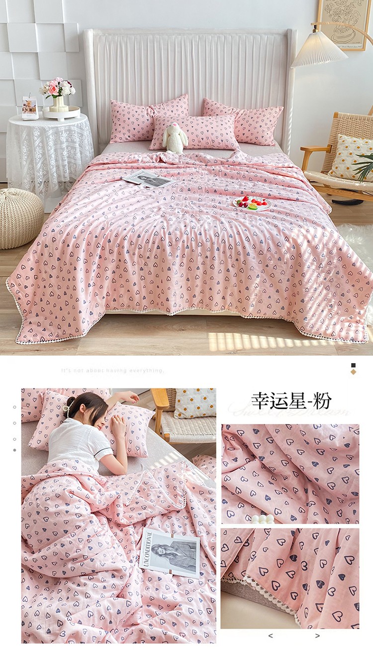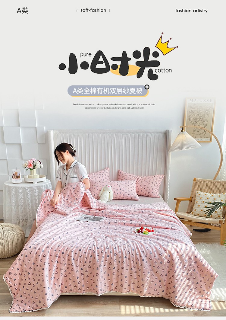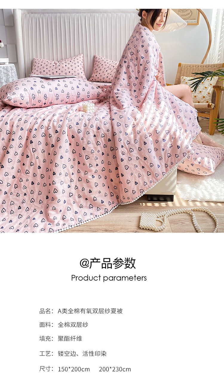 商品名称:吾秀家居 2022新款A类全棉有氧双层纱夏被 幸运星-粉