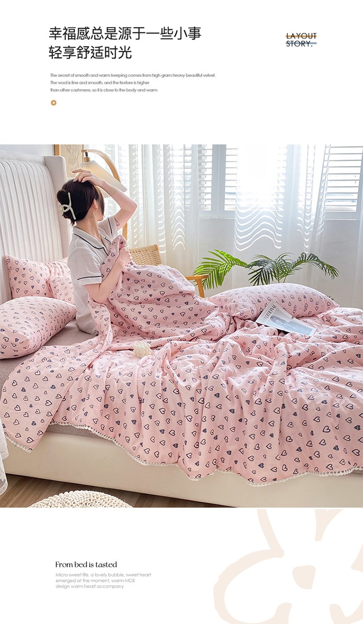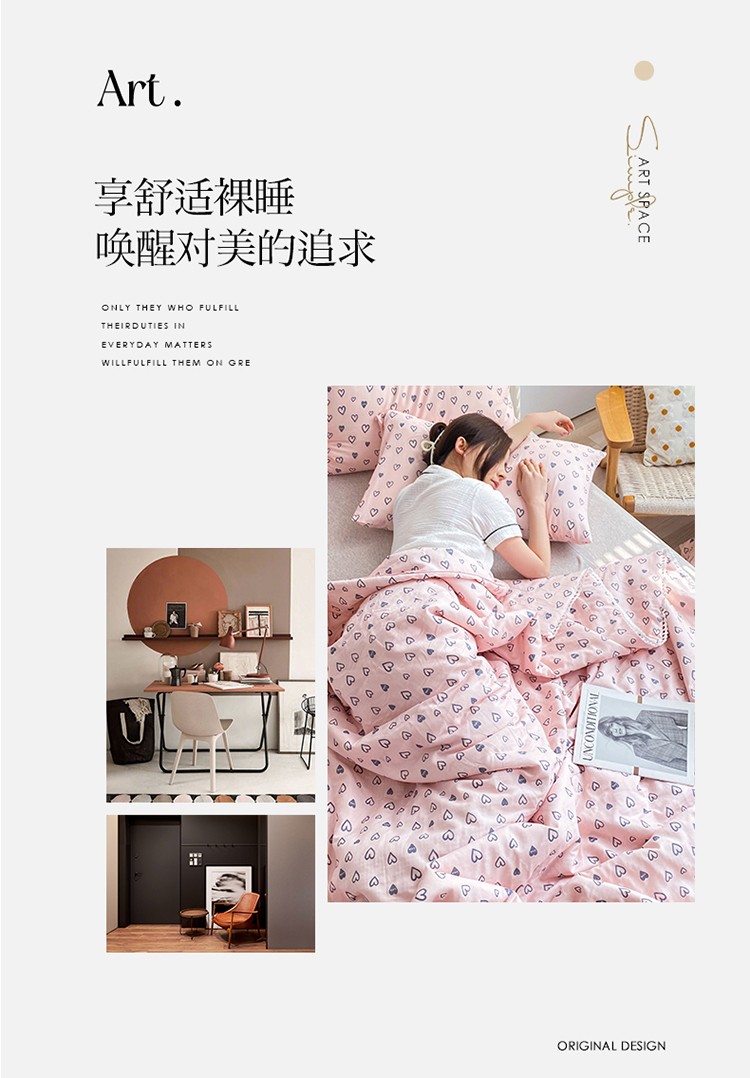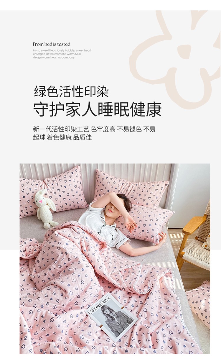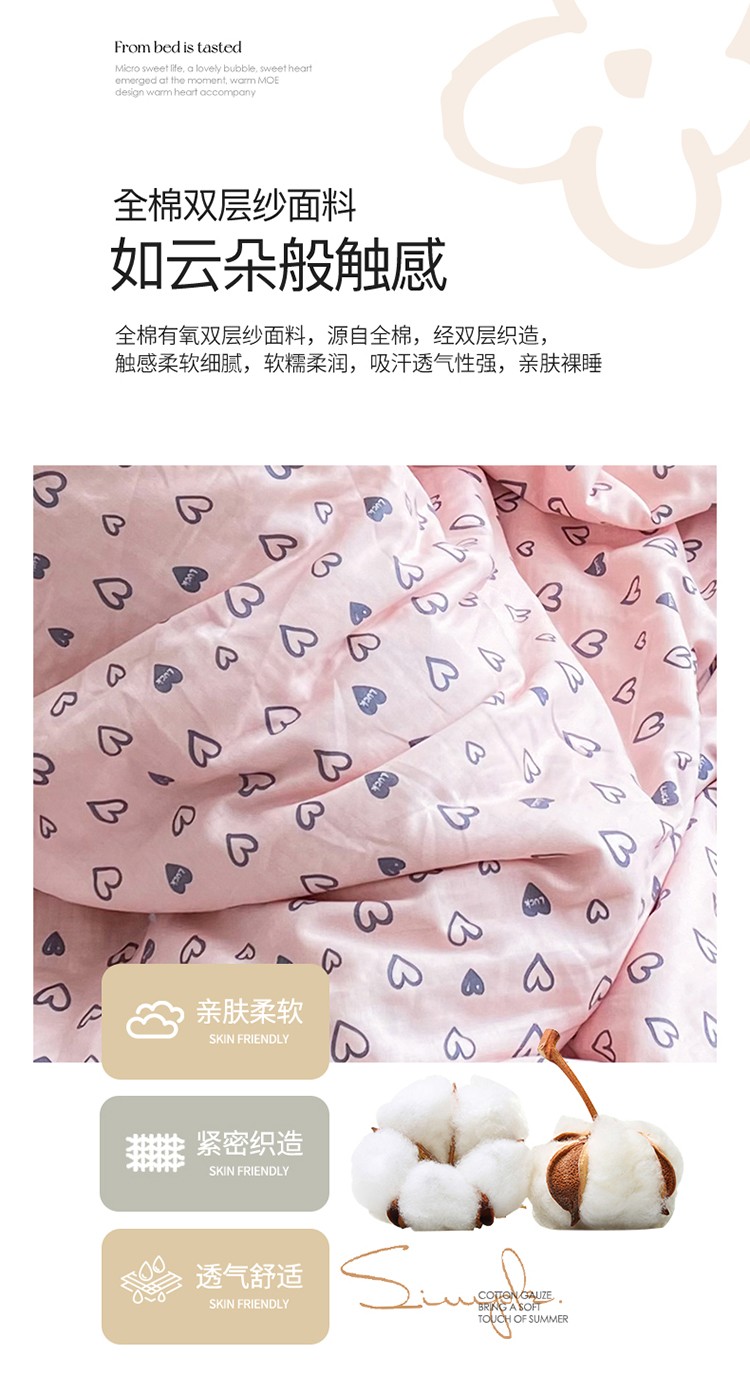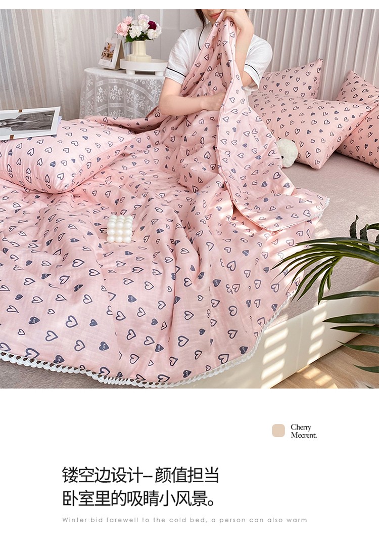 商品名称:吾秀家居 2022新款A类全棉有氧双层纱夏被 幸运星-粉