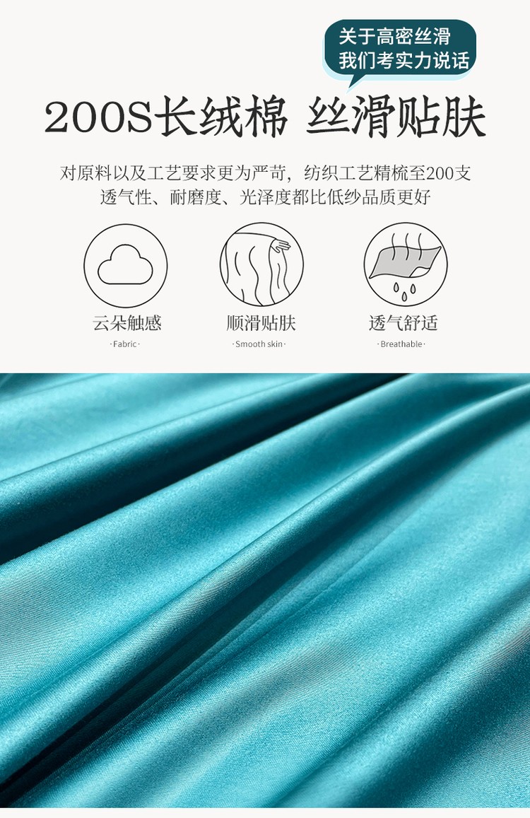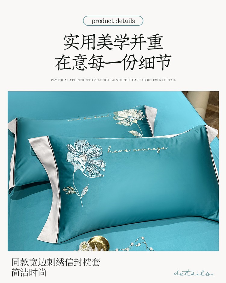 柔觉家纺 天丝刺绣贡缎提花全棉四件套,柔梦-海蓝