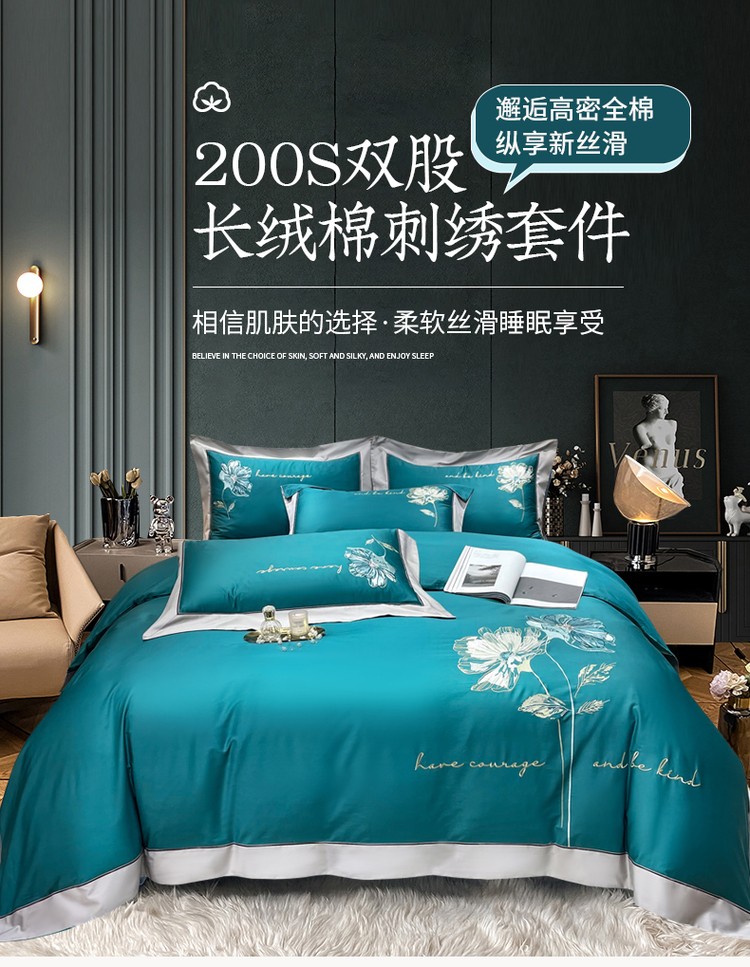 200支新款长绒棉宽边刺绣四件套