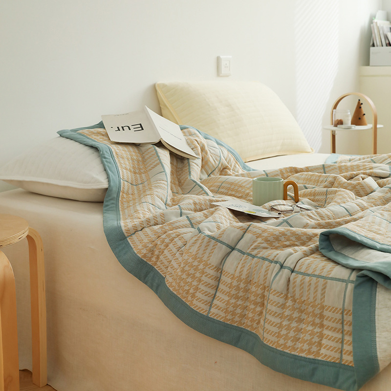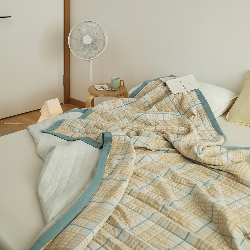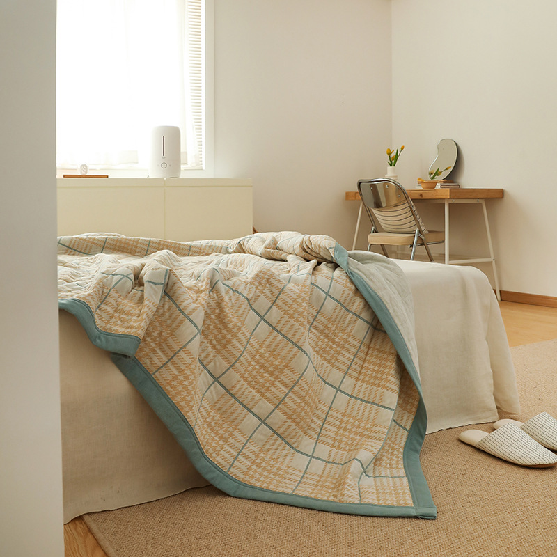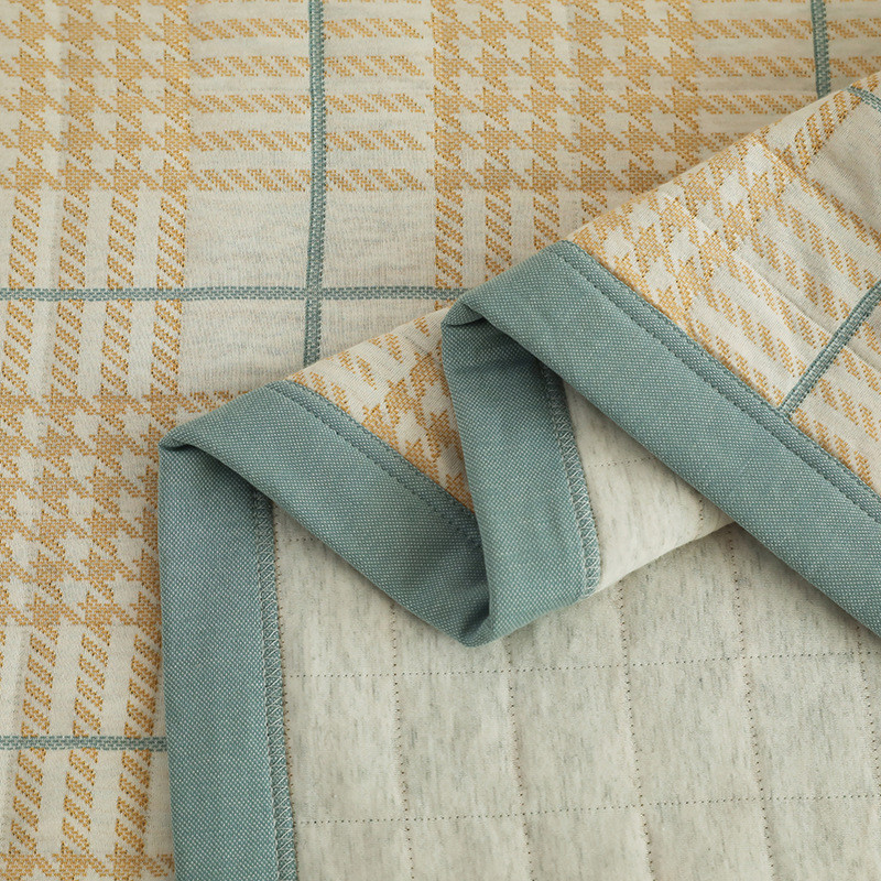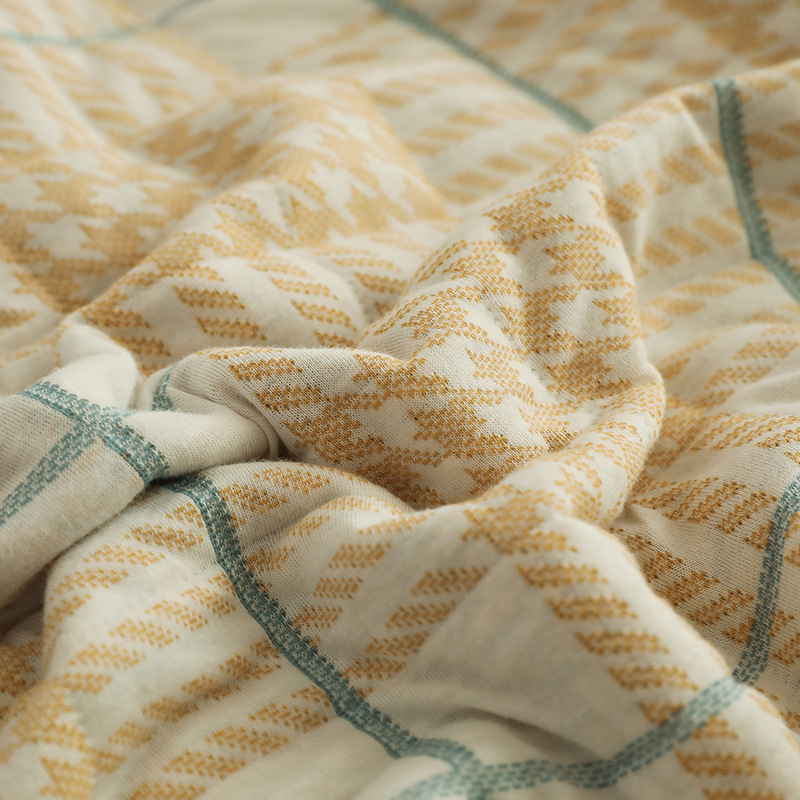 商品名称:吾秀 2023 A类色织全棉针织提花盖毯 彩线千鸟格-黄