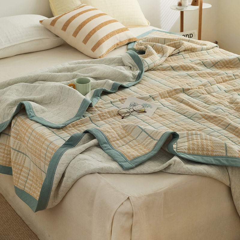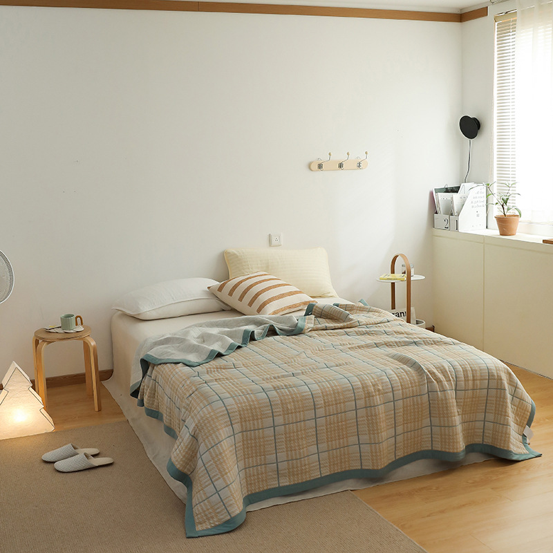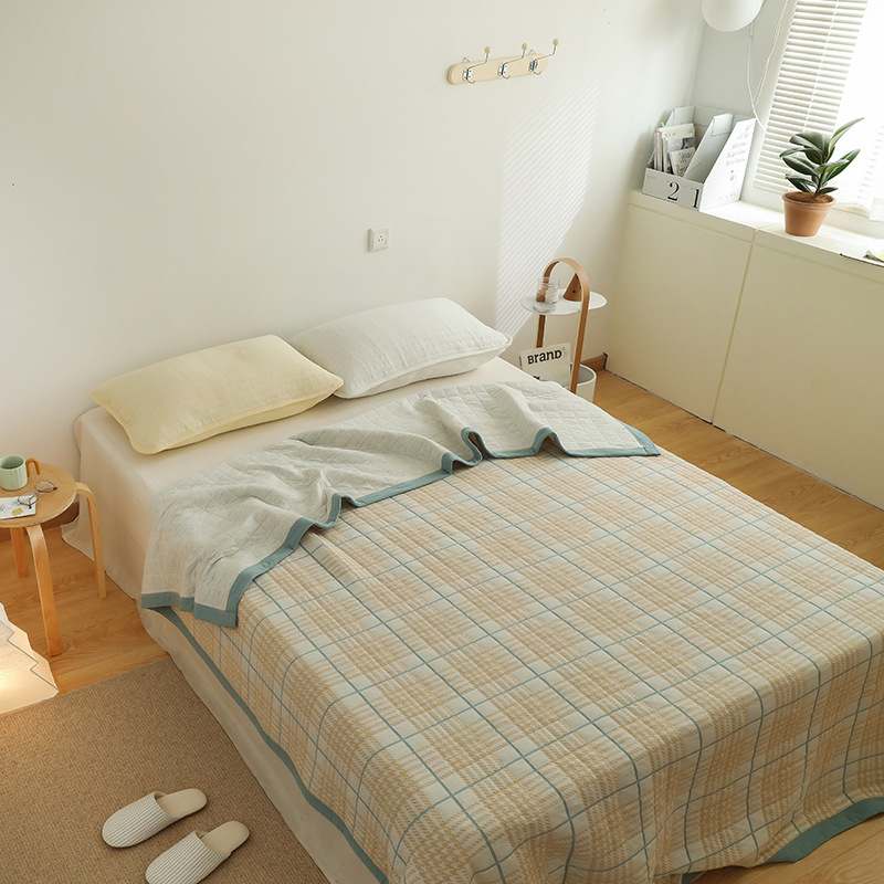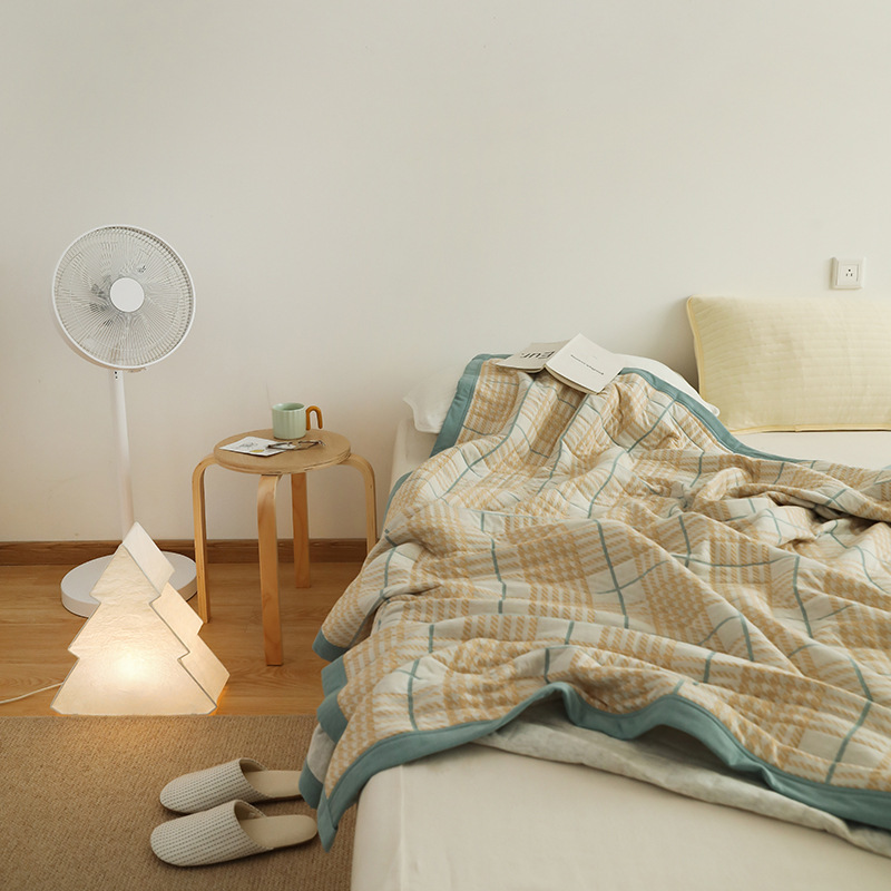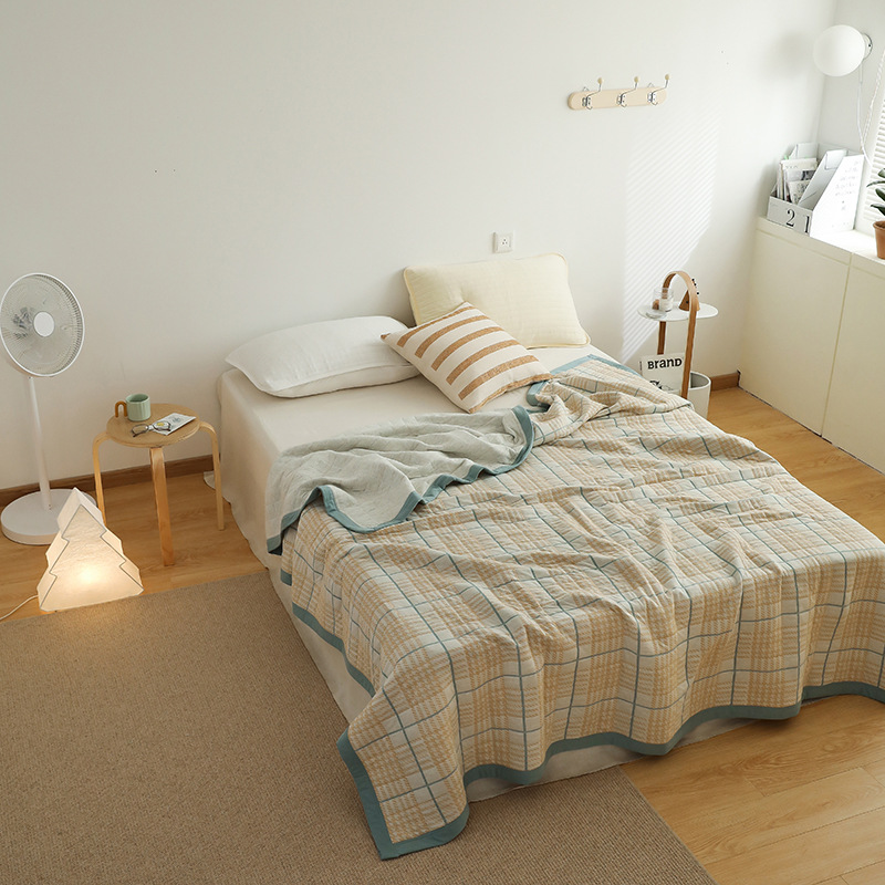 商品名称:吾秀 2023 A类色织全棉针织提花盖毯 彩线千鸟格-黄