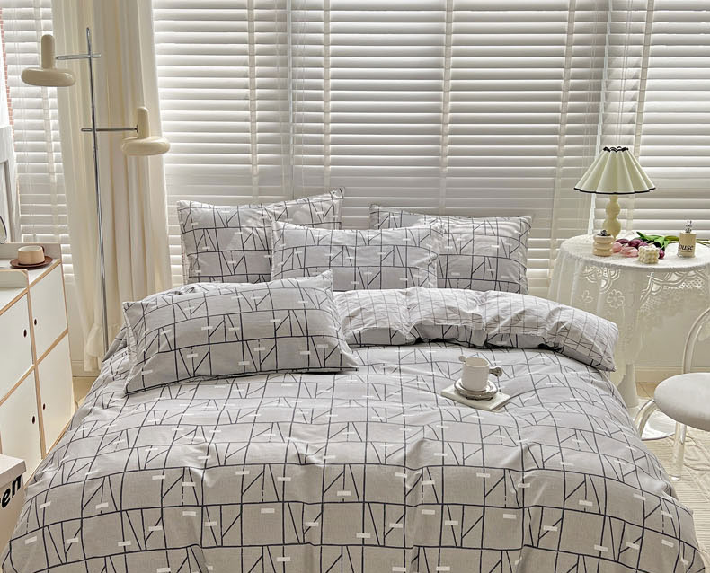 (总)梦家居 2024新款全棉13372简约小清新四件套,彩虹条纹,墨竹—黑色,墨竹—米色