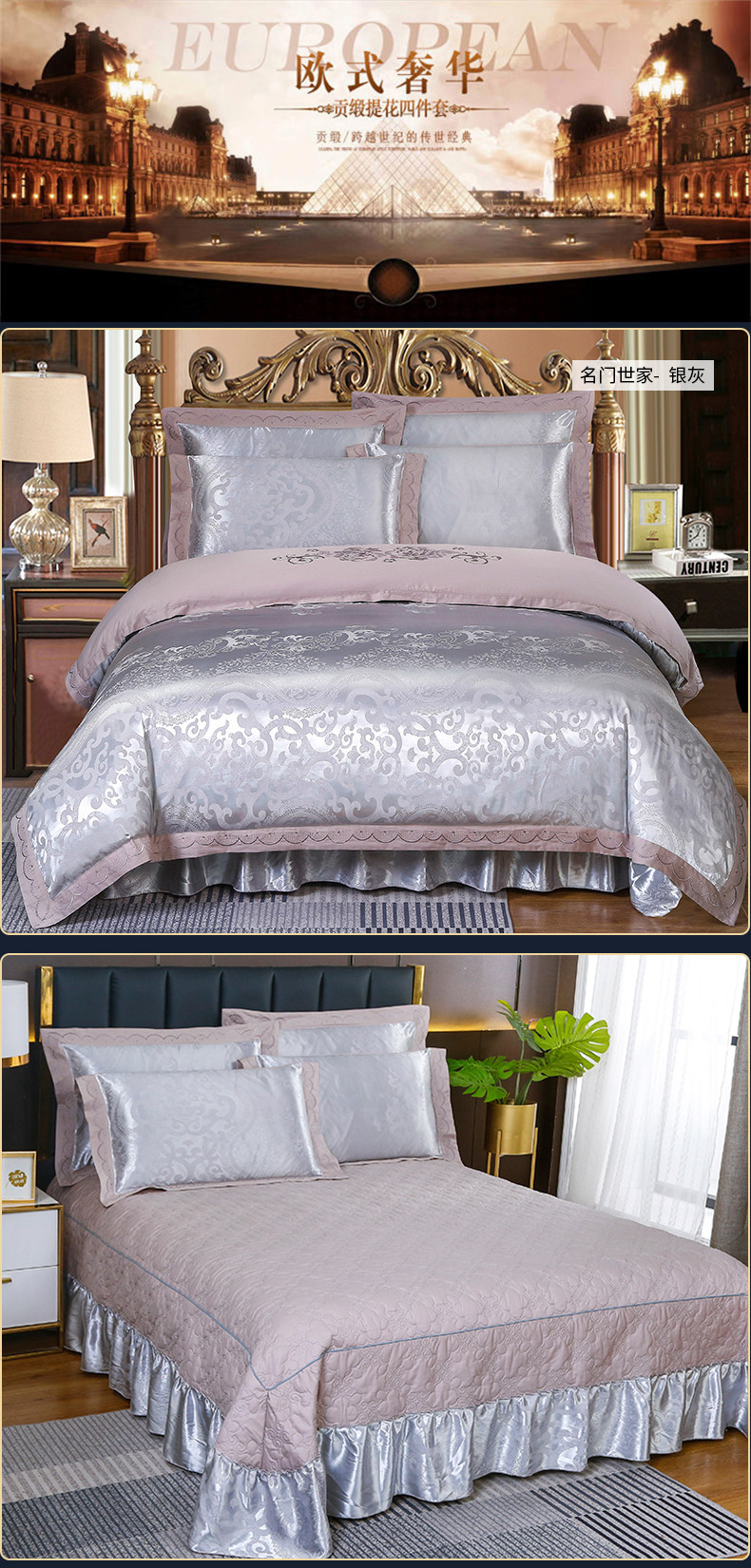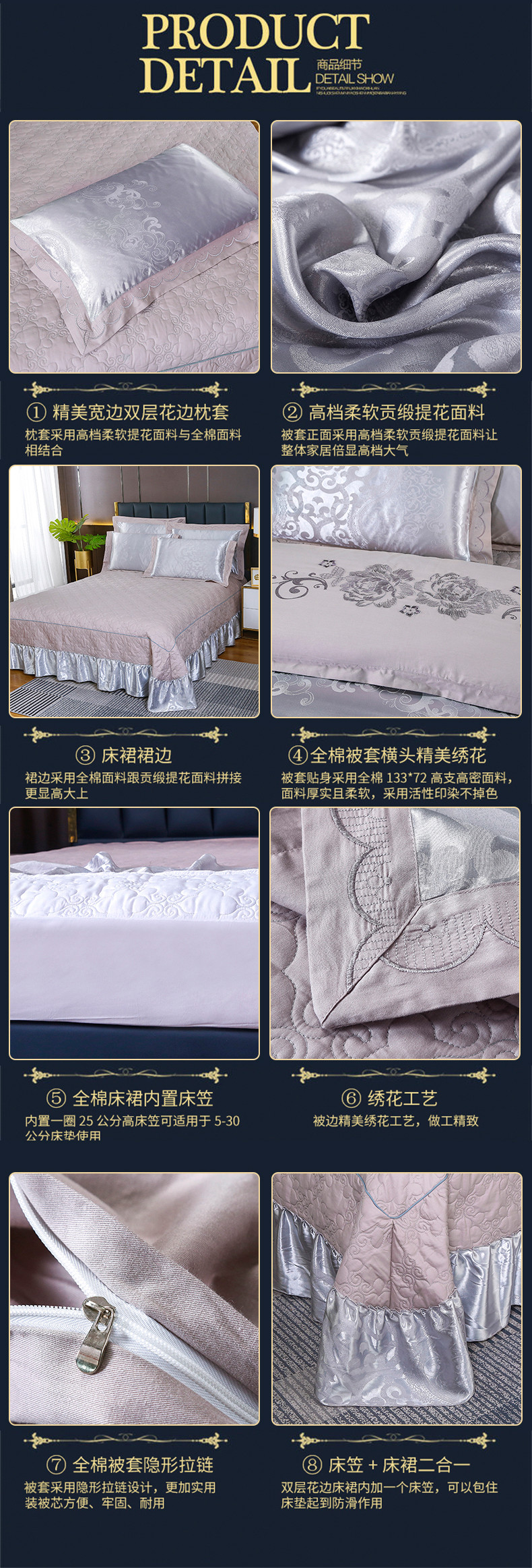 商品名称:福丽莱家纺 2023新款贡缎提花床裙四件套(夹棉)名门世家-银灰