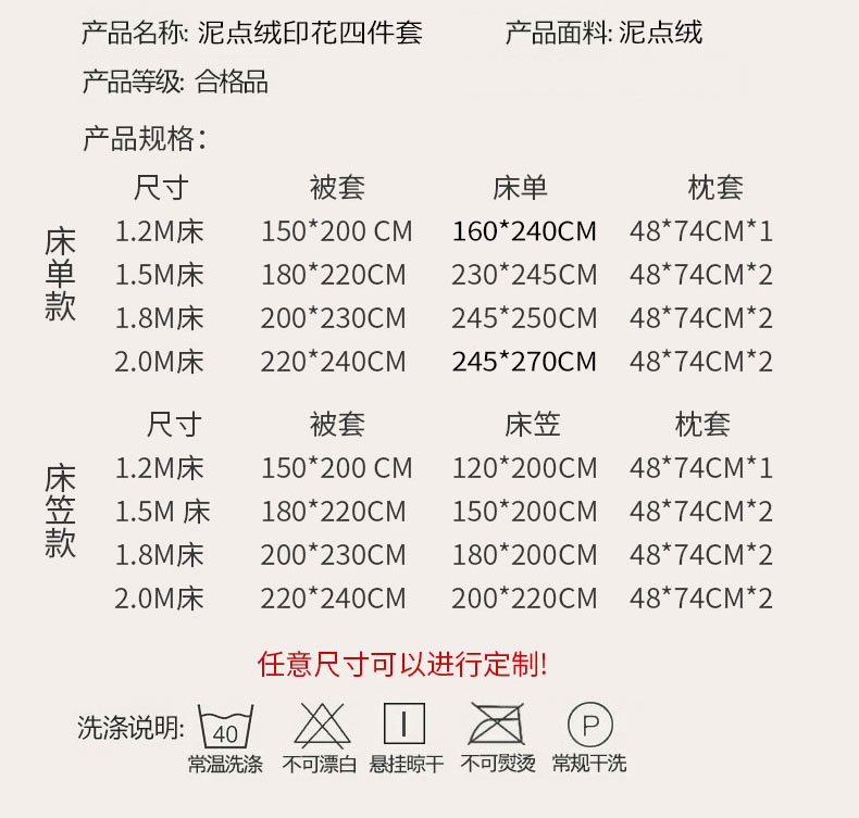 2.0m床笠款四件套(被套220x240cm)定制 | ¥170.00 |