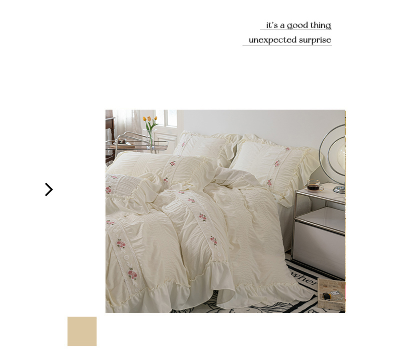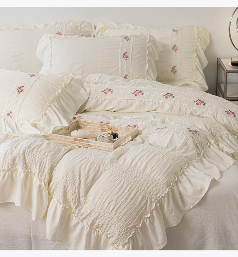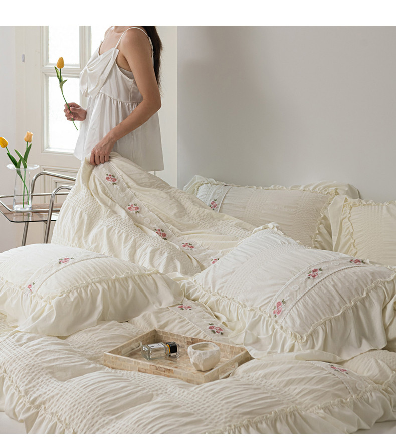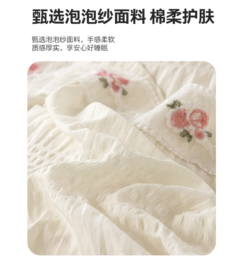 当前位置: 91家纺网 > 商品网购 > 床品套件 > 四件套 > 水洗棉四件套 > 你好美丽 2025新款泡泡纱刺绣花边四件套 泡泡纱-米白色