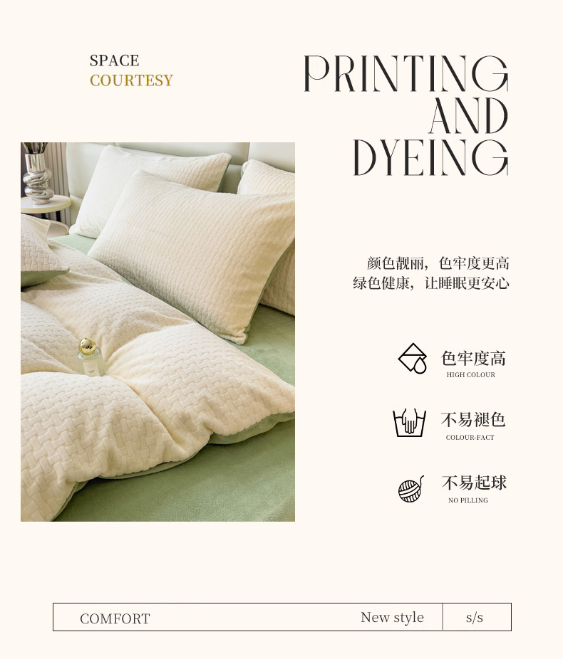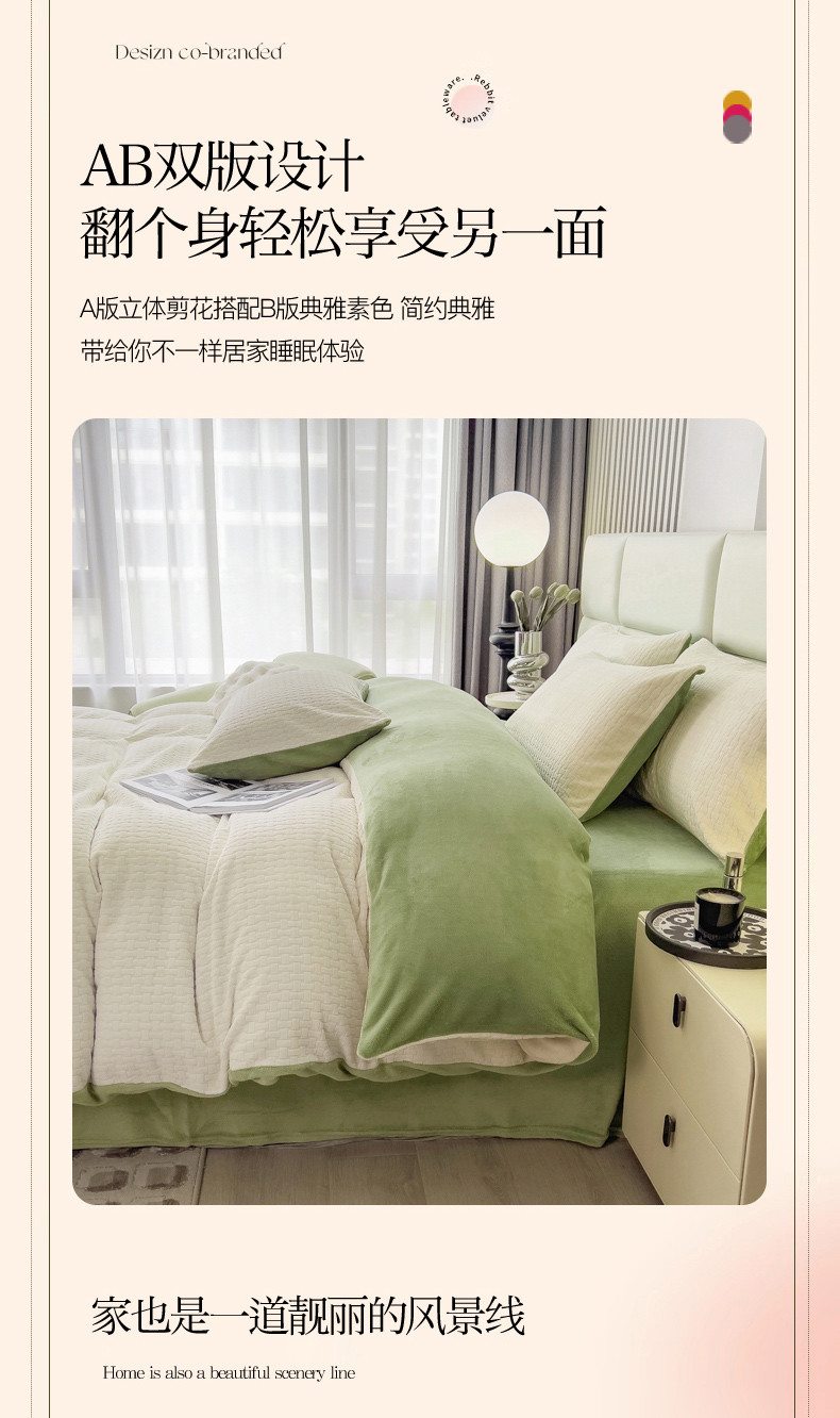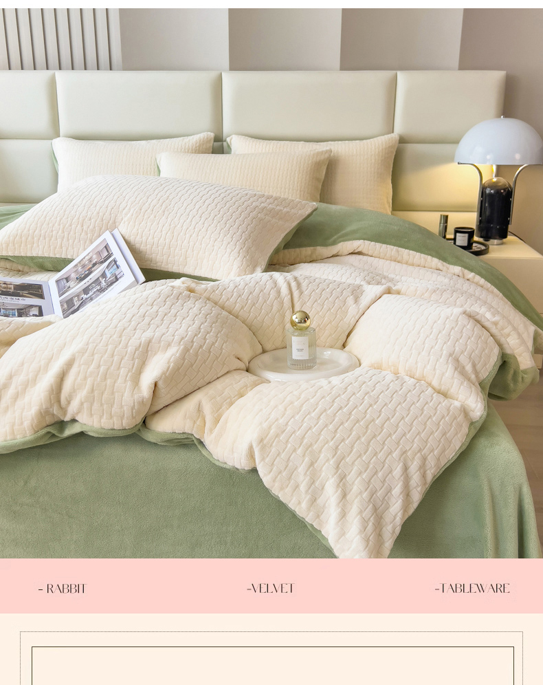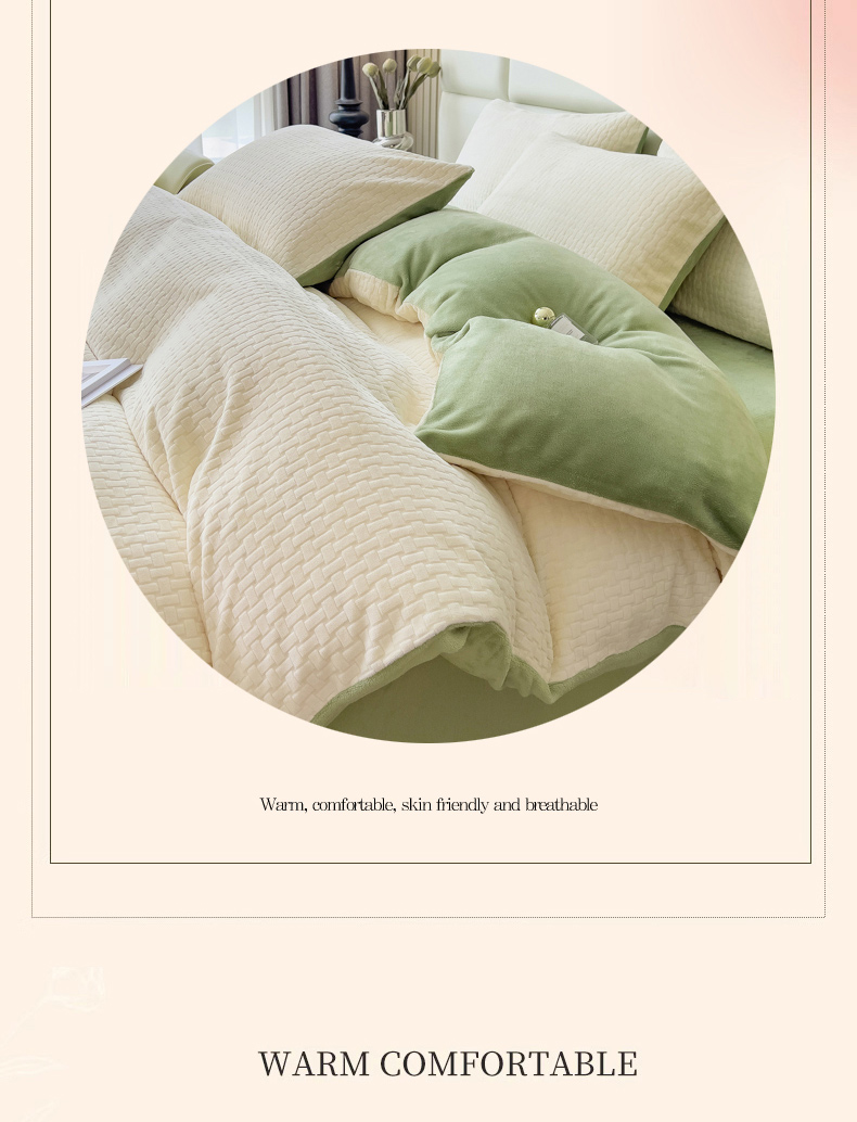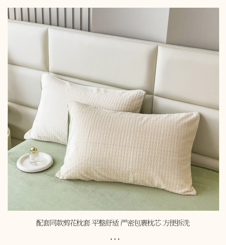 商品名称:印季 2024新款立体剪花牛奶绒保暖四件套-十字结 奶白-草绿