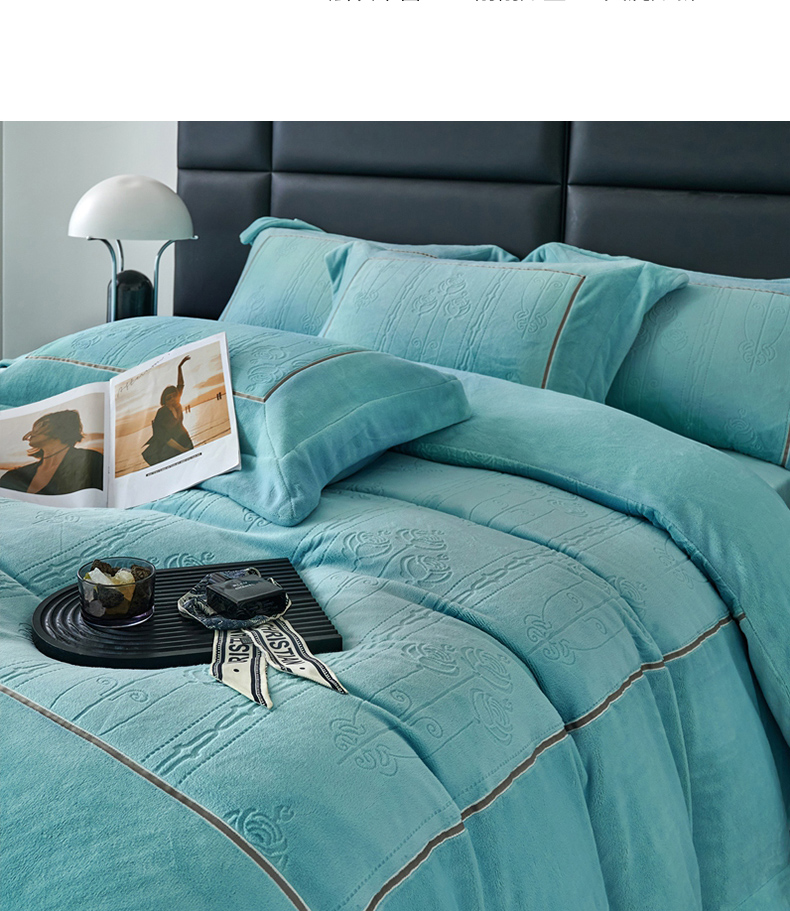 榻尚家居 2023 玫瑰花园系列雕花牛奶暖绒 松石绿