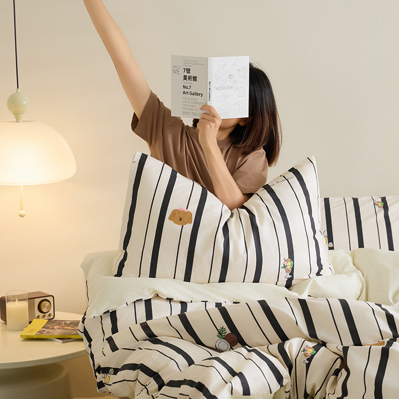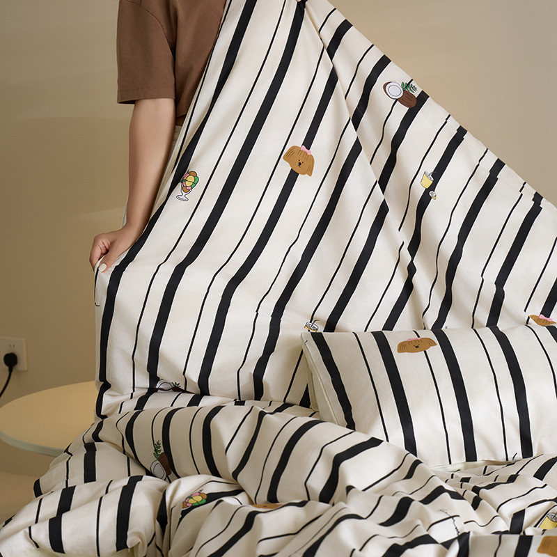 (总)原研家居 2023新款40支全棉13070印花四件套-野兽派系列,樱桃猫,公主猫,波浪猫,黑乖,蓝条狗,小花狗,竹叶熊,水果茶,波点苹果,生椰冰淇凌,青春