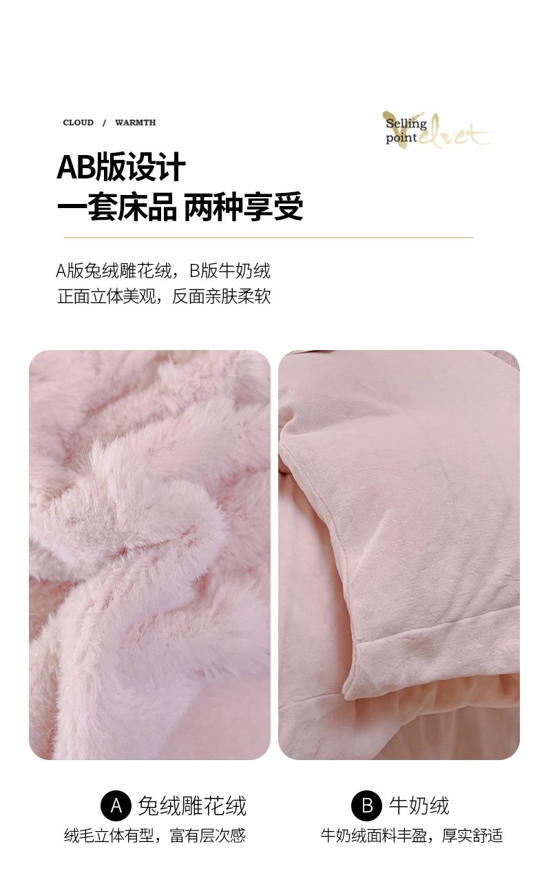(总)品家居 2025新款AB版高克重兔绒牛奶绒四件套-花絮,花絮-粉色,花絮-黄色