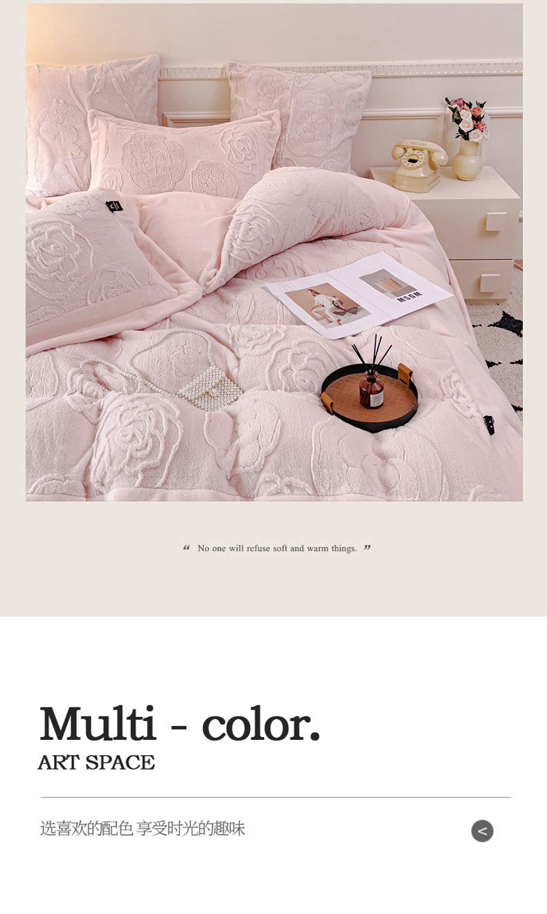(总) 品家居 2025新款5D雕花牛奶绒四件套-心动玫瑰,粉拼灰,黄拼灰,蓝拼灰