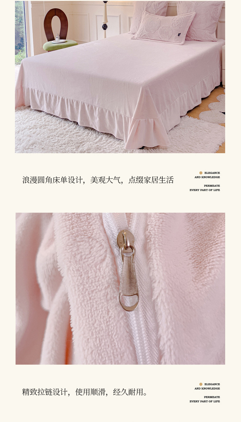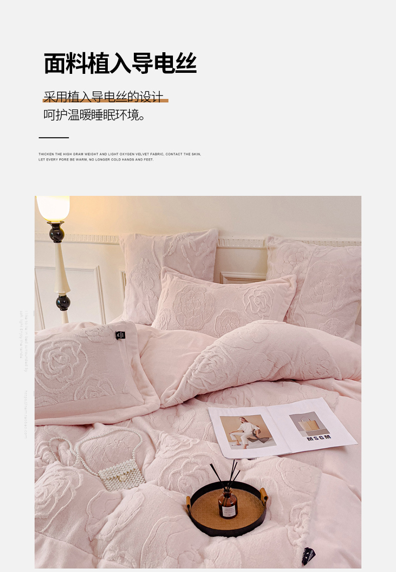 商品名称:品家居 2025新款AB版高克重兔绒牛奶绒四件套-花颂 花颂-粉色