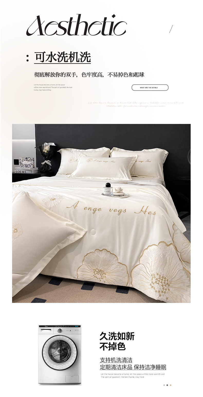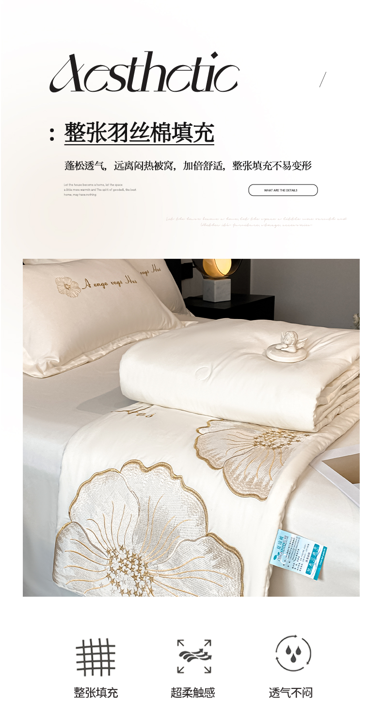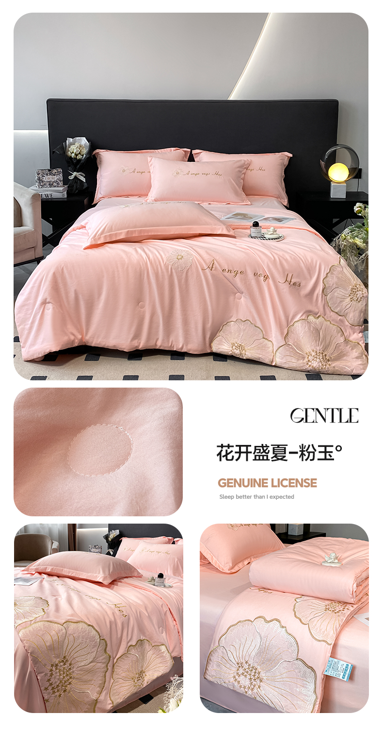 (总)你好美丽 2025新款水洗磨毛刺绣夏被四件套-花开盛夏