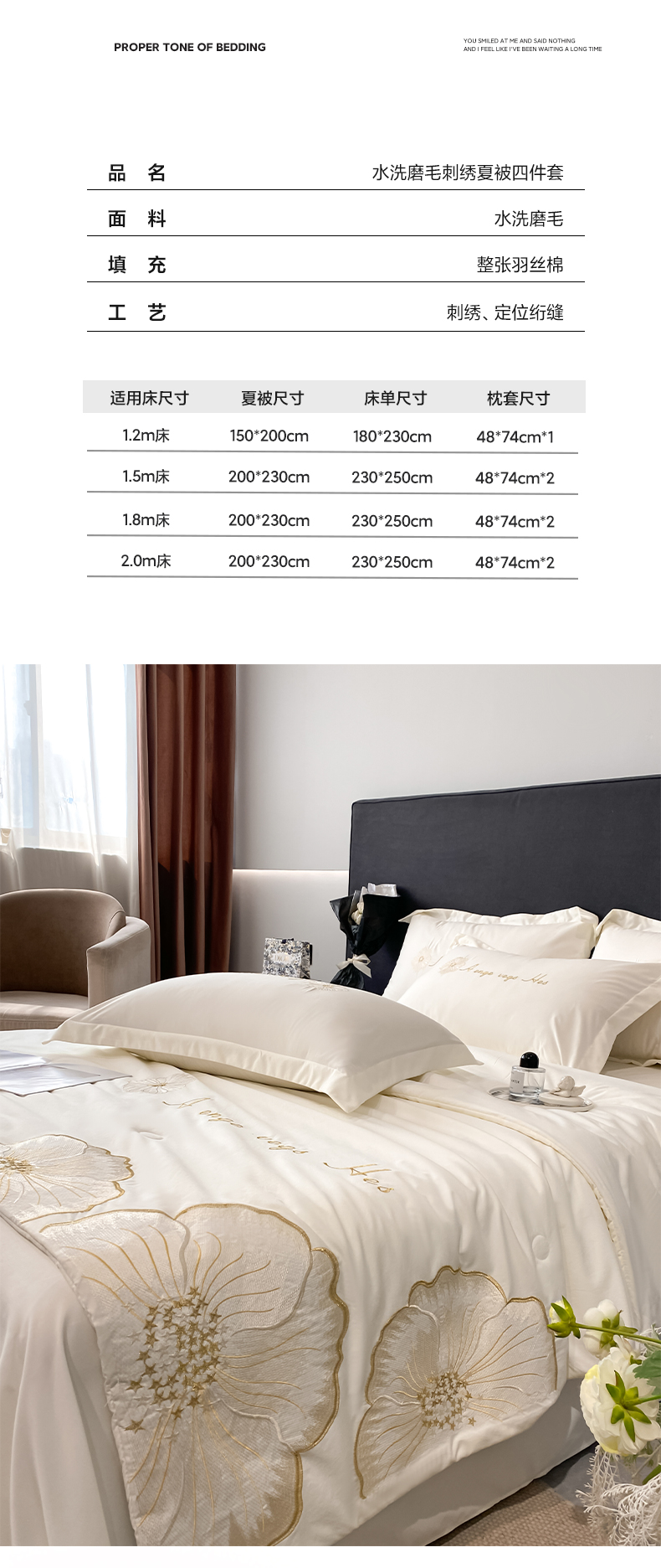 商品名称:(总)你好美丽 2025新款水洗磨毛刺绣夏被四件套-花开盛夏