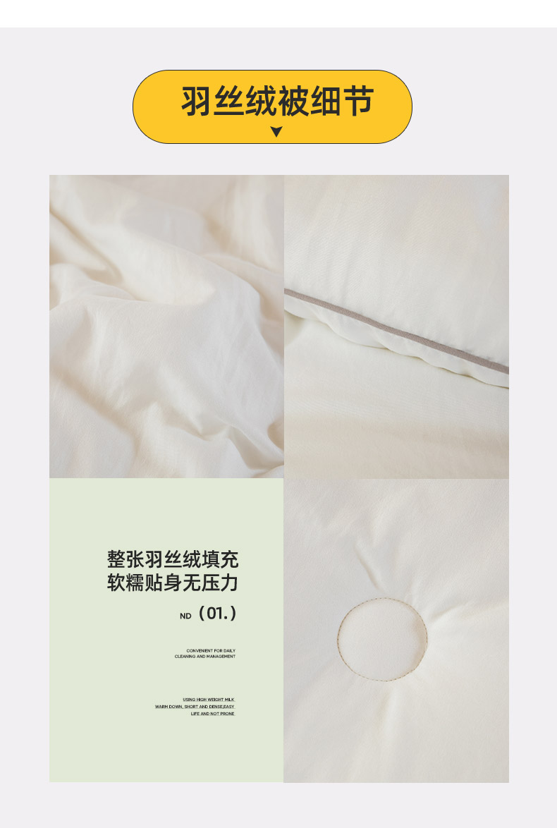 全棉六件套 被套尺寸:150*200CM*1 床单尺寸:160*230CM*1 枕套尺寸:48*74CM *1 羽丝绒被芯尺寸:150*200CM*1(3斤)
