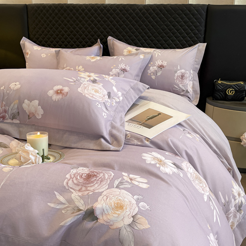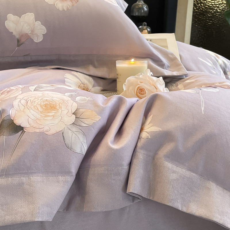 栩裕纺织 2025新款雪芙棉超柔天丝棉磨毛四件套 暮色蔷薇