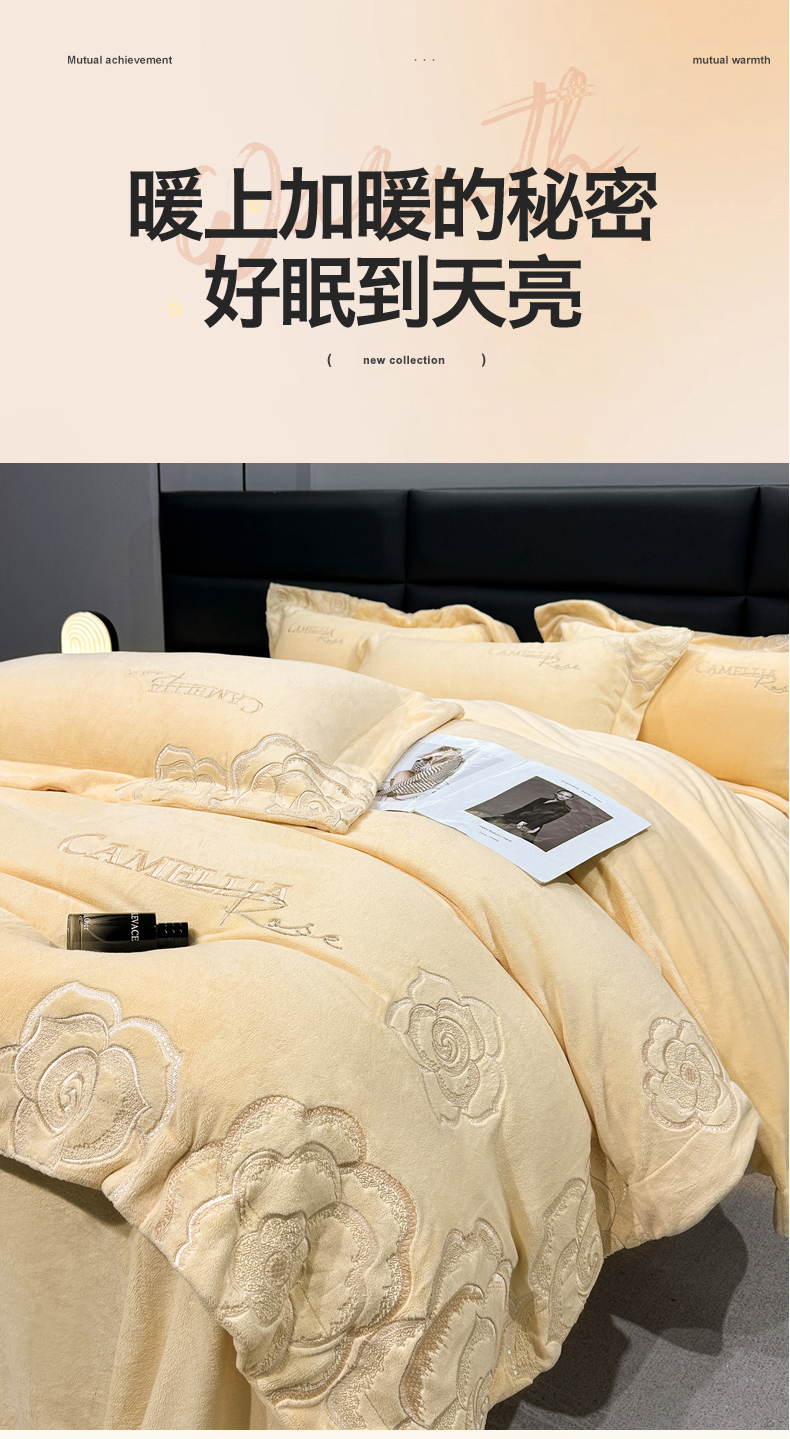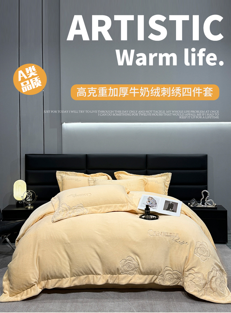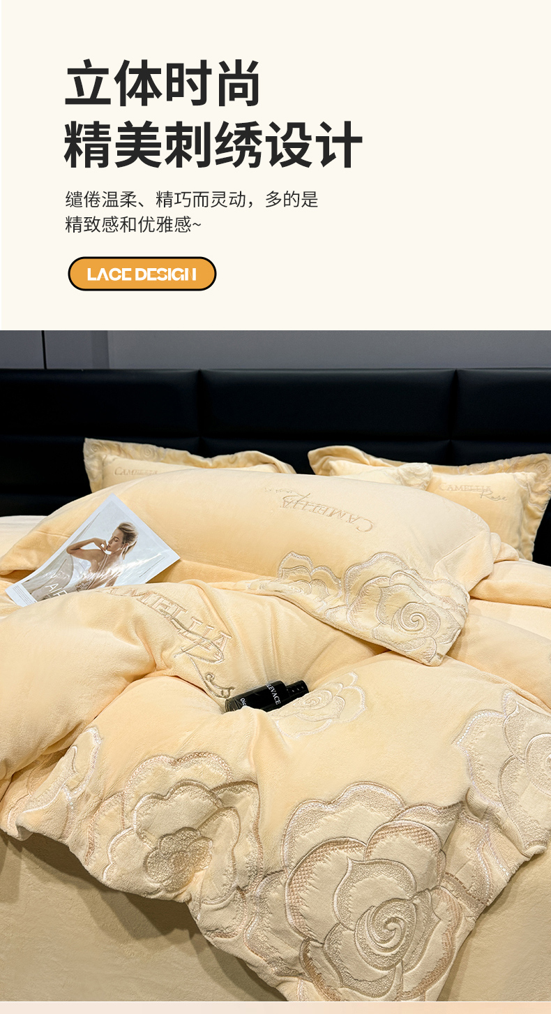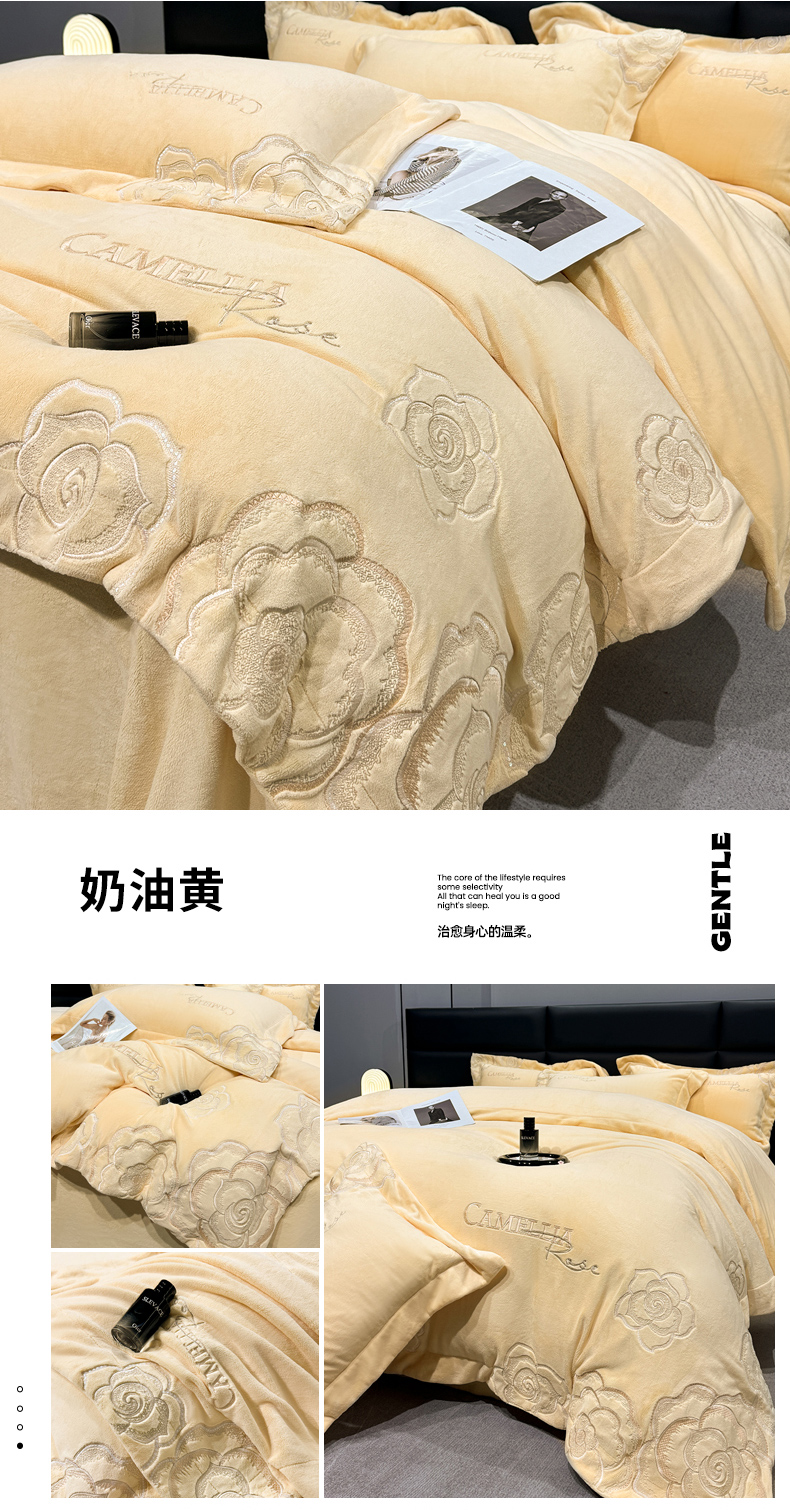 星蕴家纺 2024新款220克全消光牛奶绒四件套-爱丽丝 奶油黄