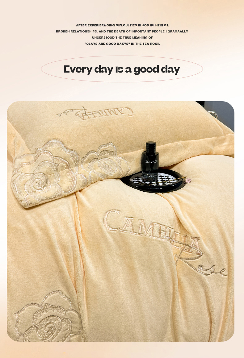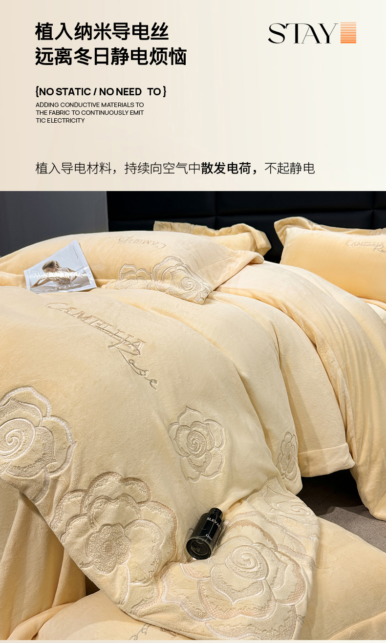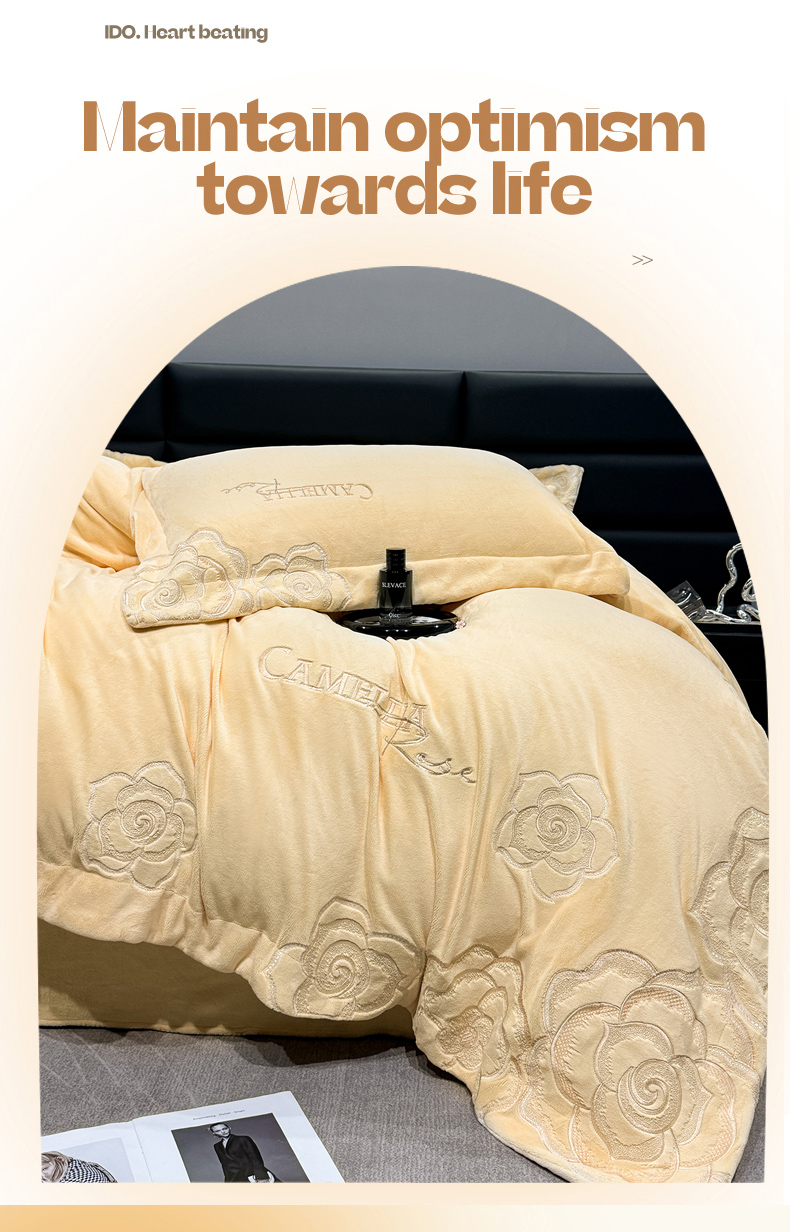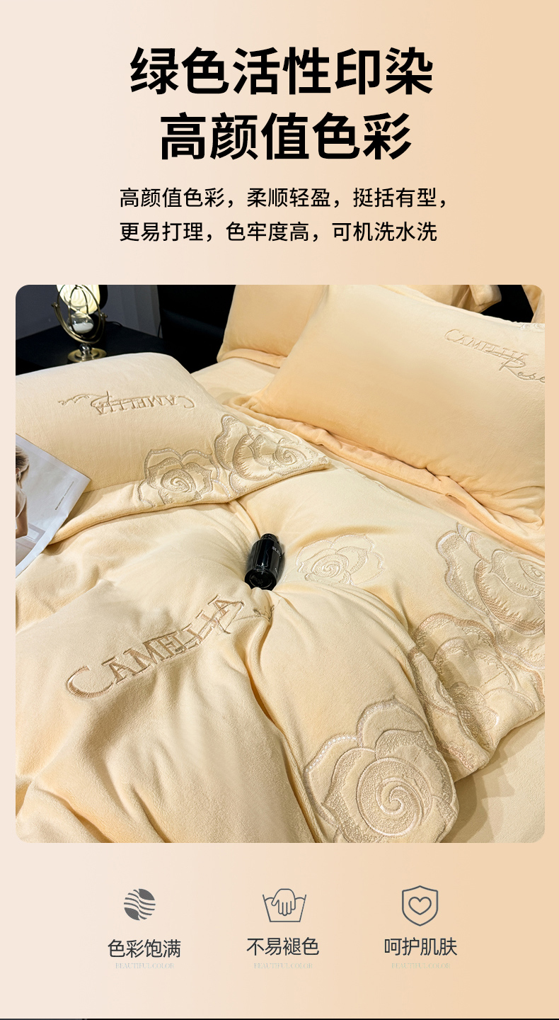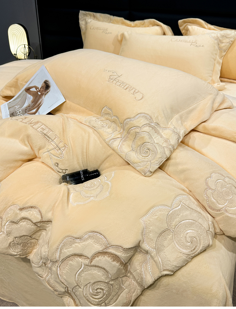 星蕴家纺 2024新款220克全消光牛奶绒四件套-爱丽丝 奶油黄