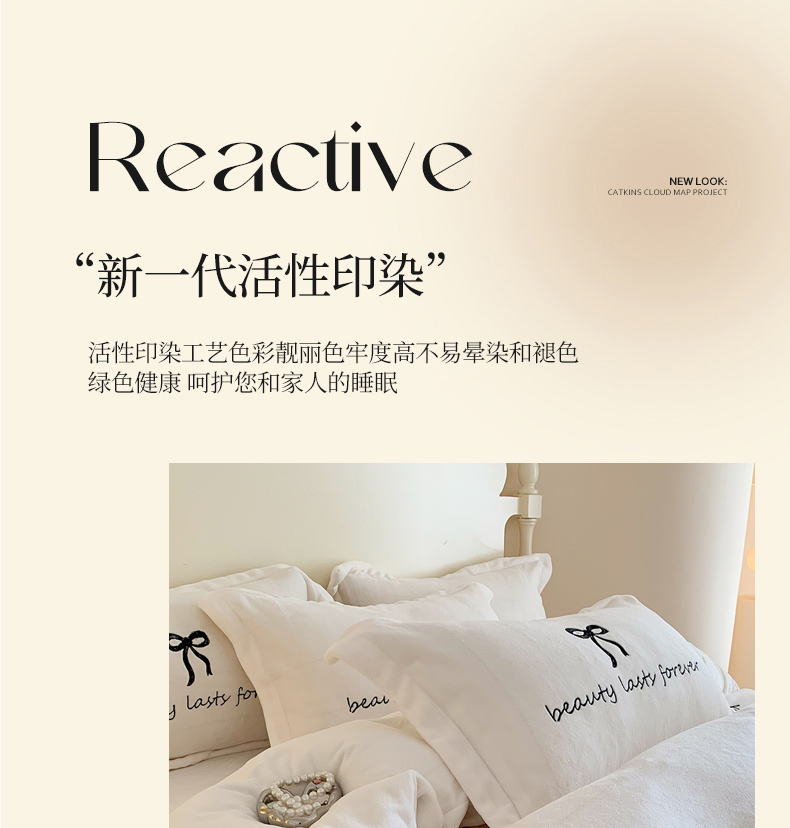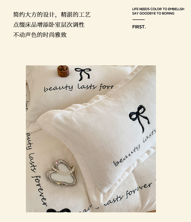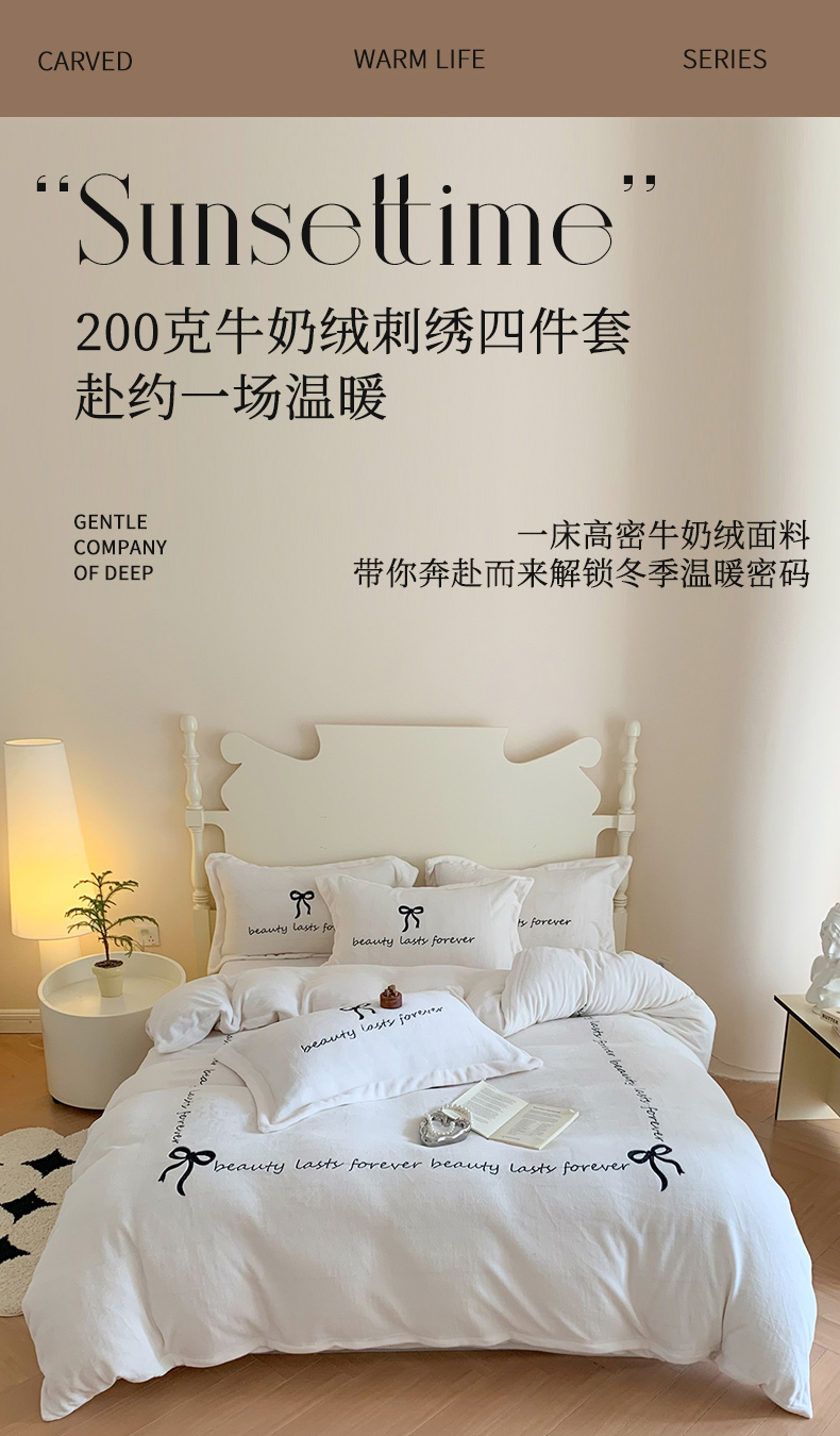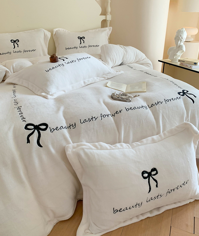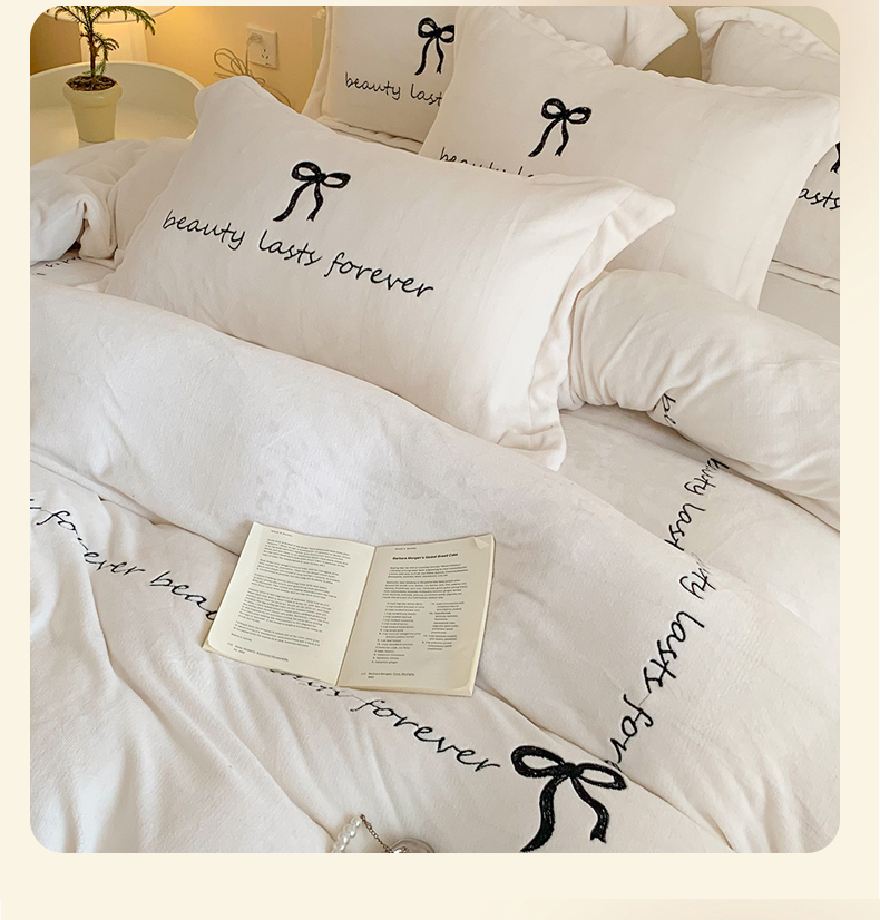 当前位置: 91家纺网 > 商品网购 > 床品套件 > 四件套 > 牛奶绒四件套 > 你好美丽 2025新款200克牛奶绒四件套--蝴蝶结 蝴蝶机白黑