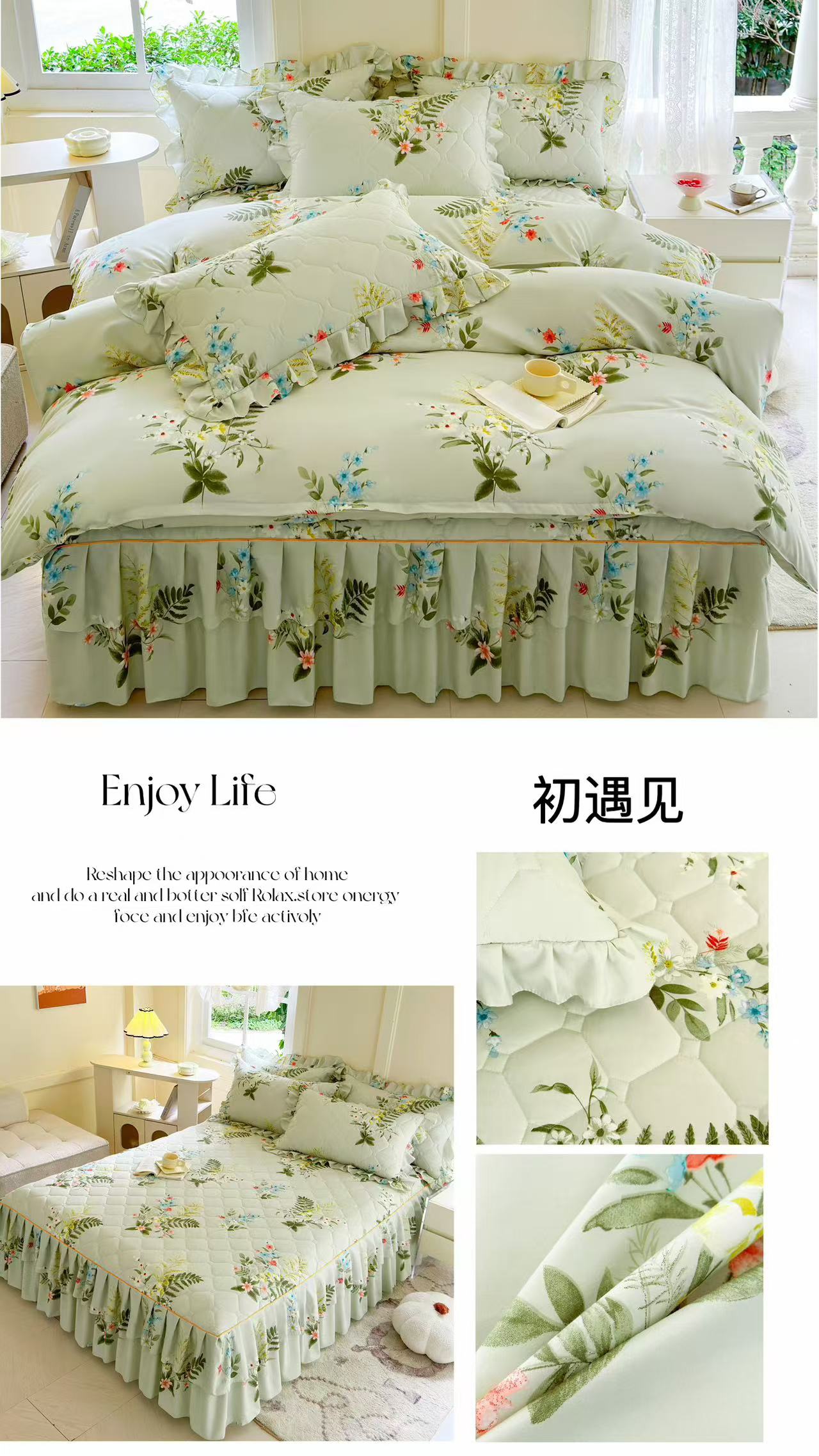 (总)雨田 2021新款韩版双边夹棉床裙四件套,春之絮,极简生活,情深似海,小香风,星光飘絮,玉兰