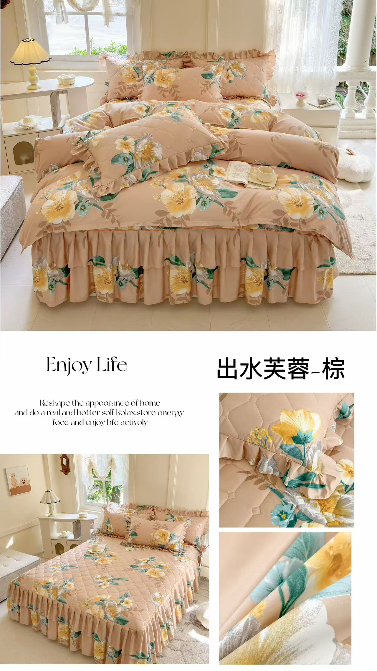 (总)雨田家纺 2024新款亲肤棉印花床裙四件套,出水芙蓉-兰,出水芙蓉-棕,初遇见,花容月貌-灰,如花似锦-绿,春暖花开,梦露花园,香草