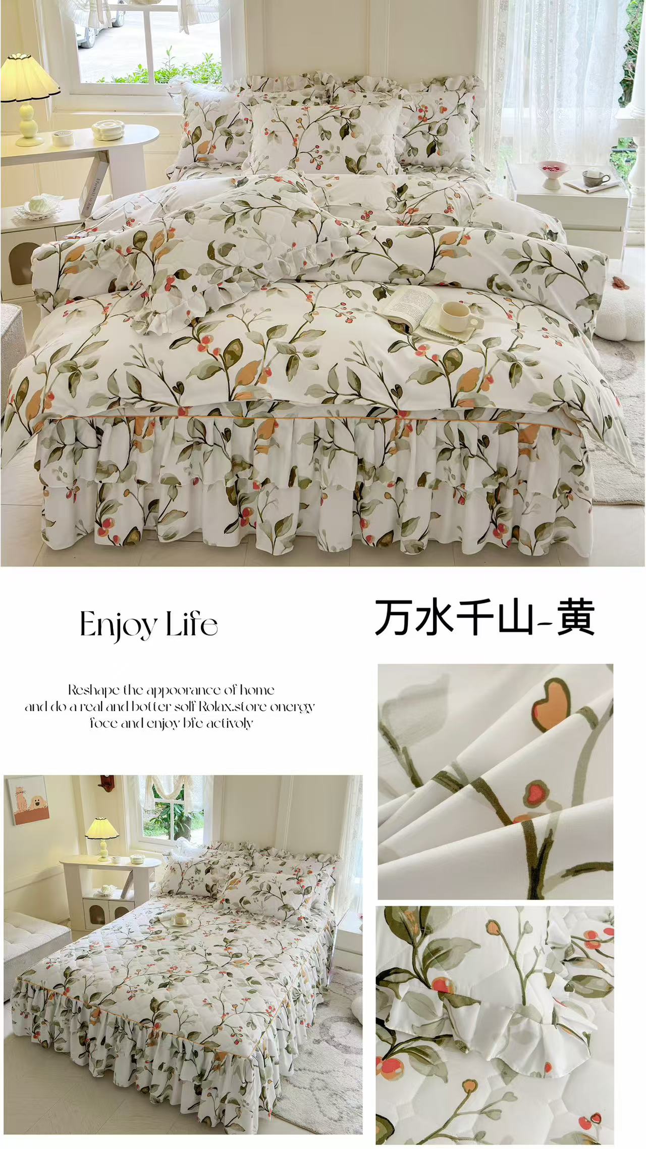 (总)雨田家纺 2025新款亲肤棉印花床裙四件套-系列一,繁花,富贵年华,千山万水棕,青春,诗情画意绿,唯爱花季兰,新动力棕