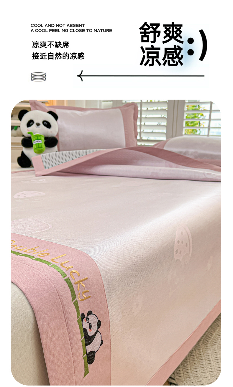• 91家纺网 家纺一手货源 找家纺 席佬大 2025 新款肌理纹800D卡通草莓熊猫菱形熊猫刺绣床席床笠凉席 草莓熊猫-粉色床笠款