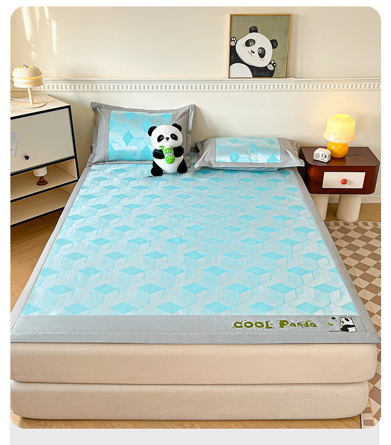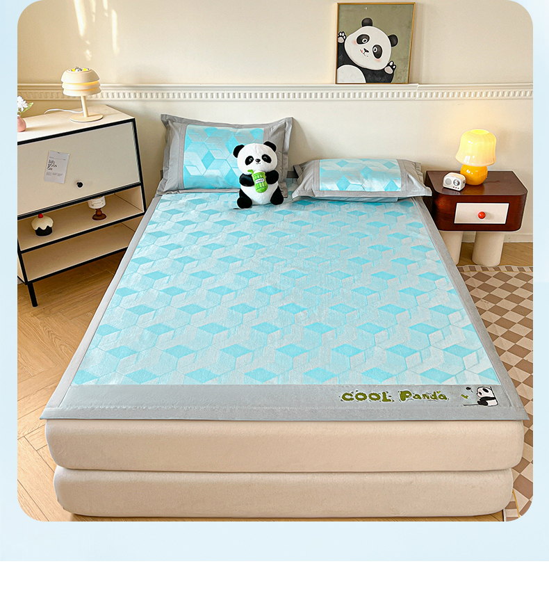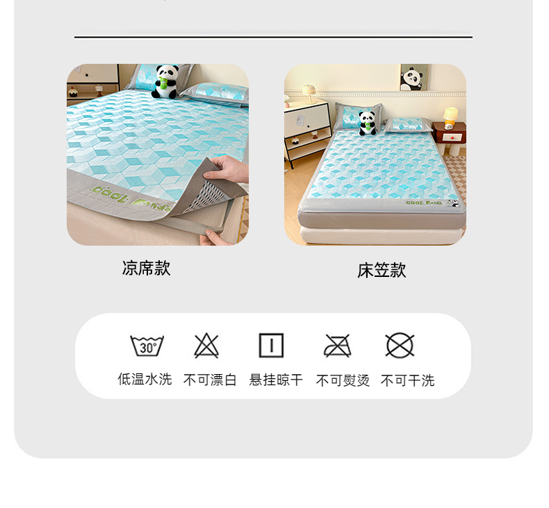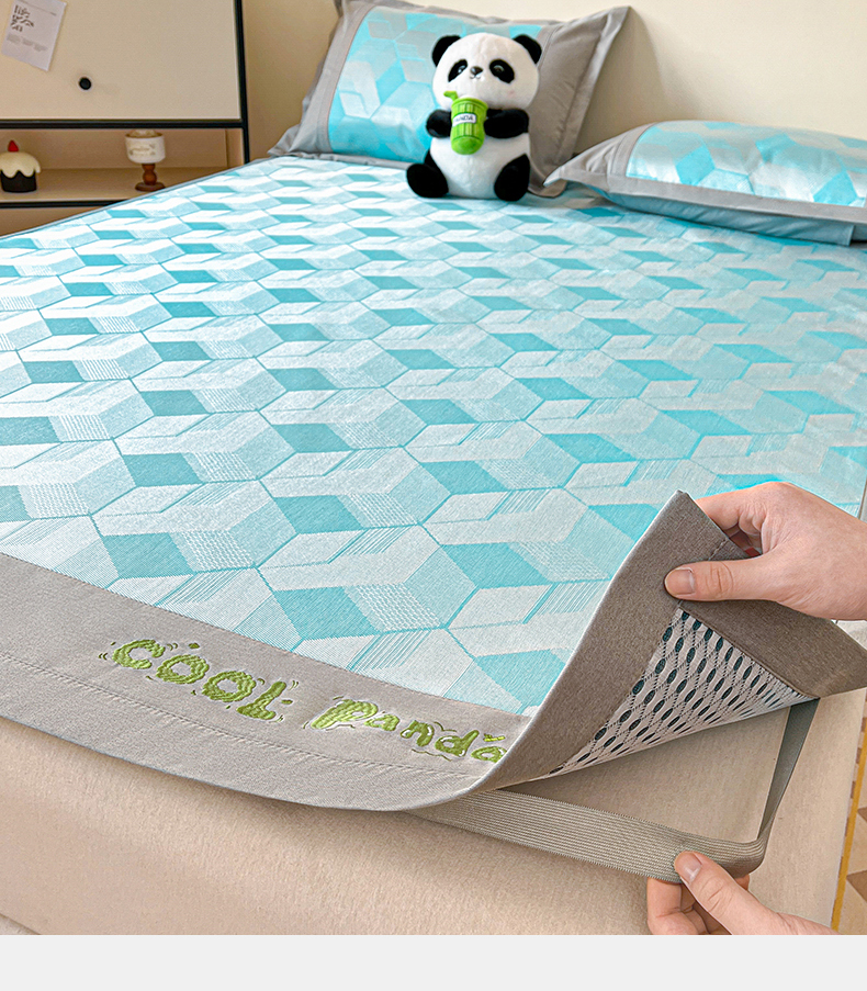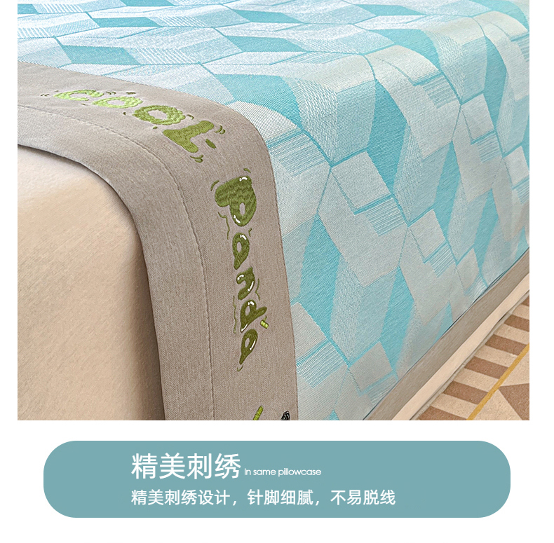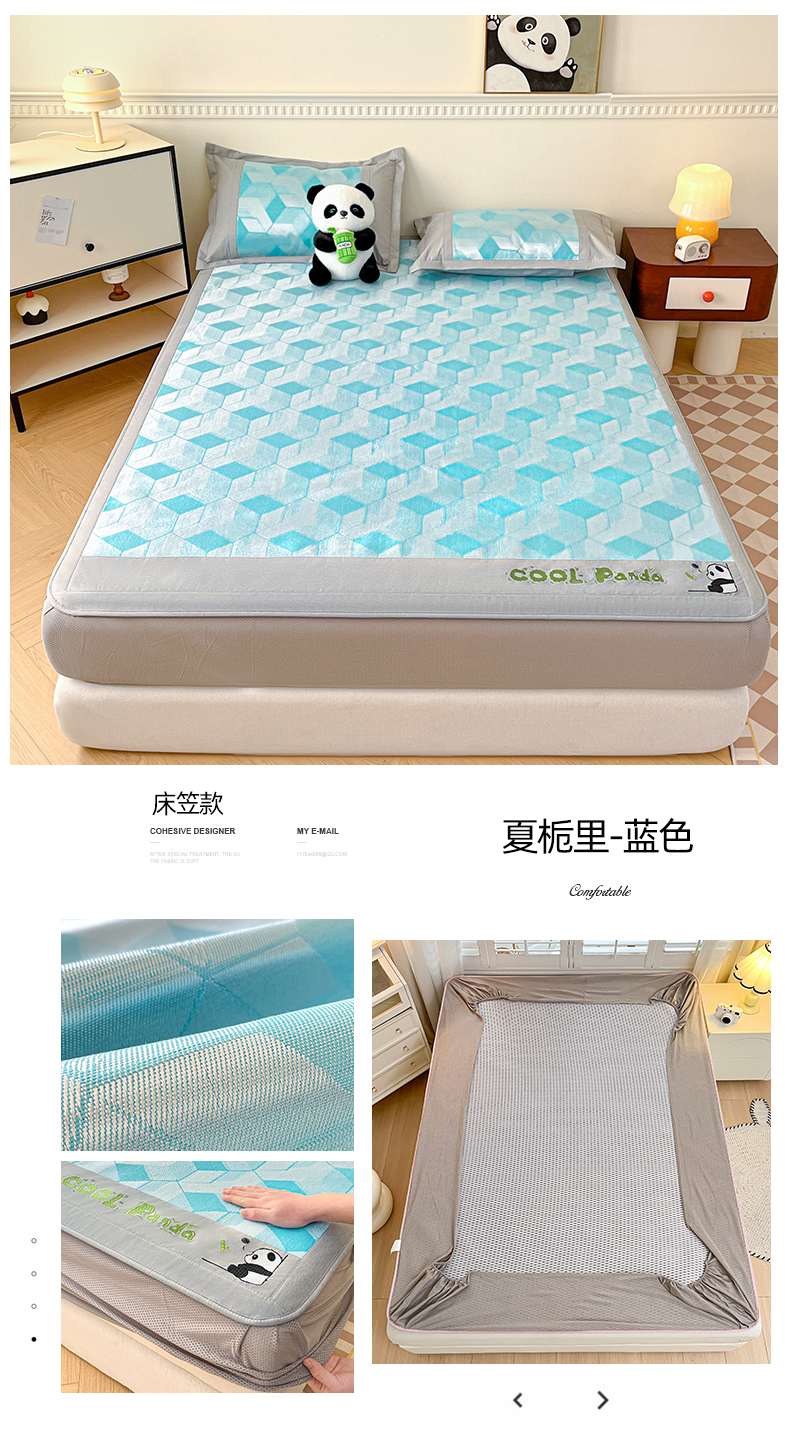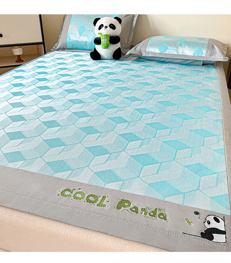 商品名称:席佬大 2025 新款肌理纹800D卡通草莓熊猫菱形熊猫刺绣床席床笠凉席 夏栀里-蓝色床笠款