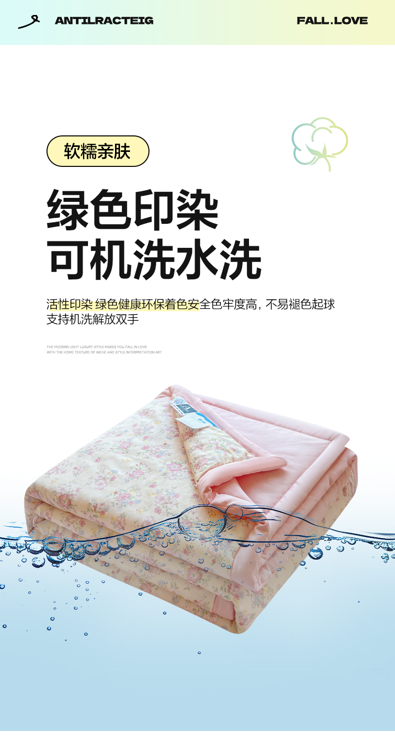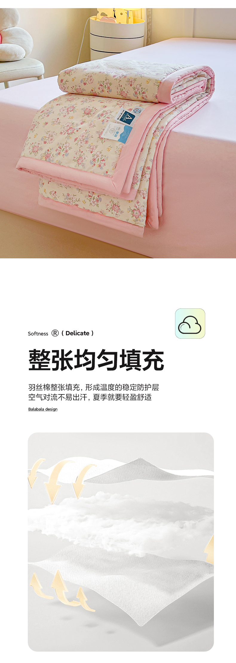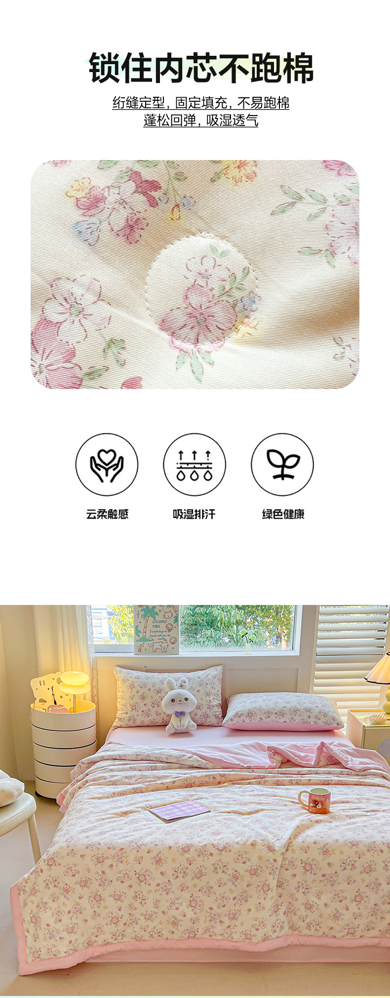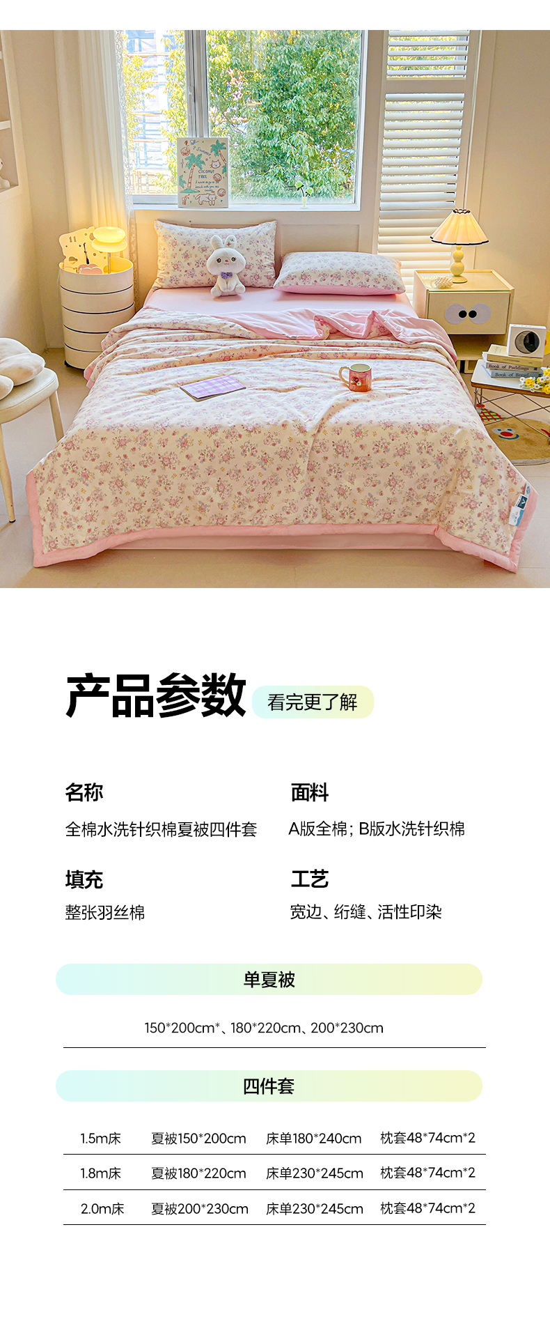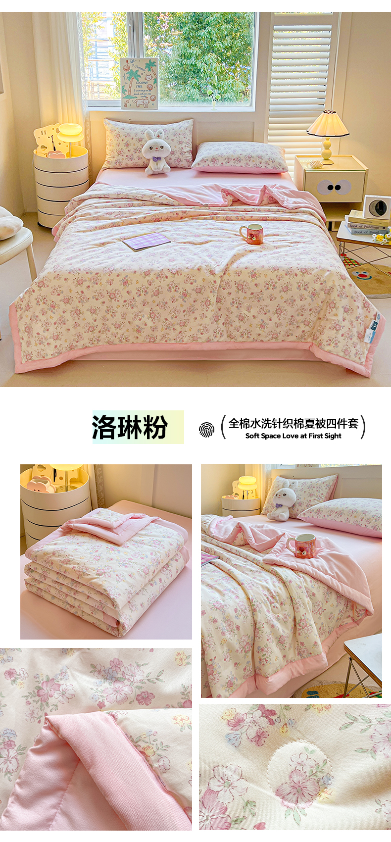 • 91家纺网 家纺一手货源 找家纺 金喜 2025新款全棉印花夏被可爱卡通风夏凉被薄被子夏被四件套 洛琳粉