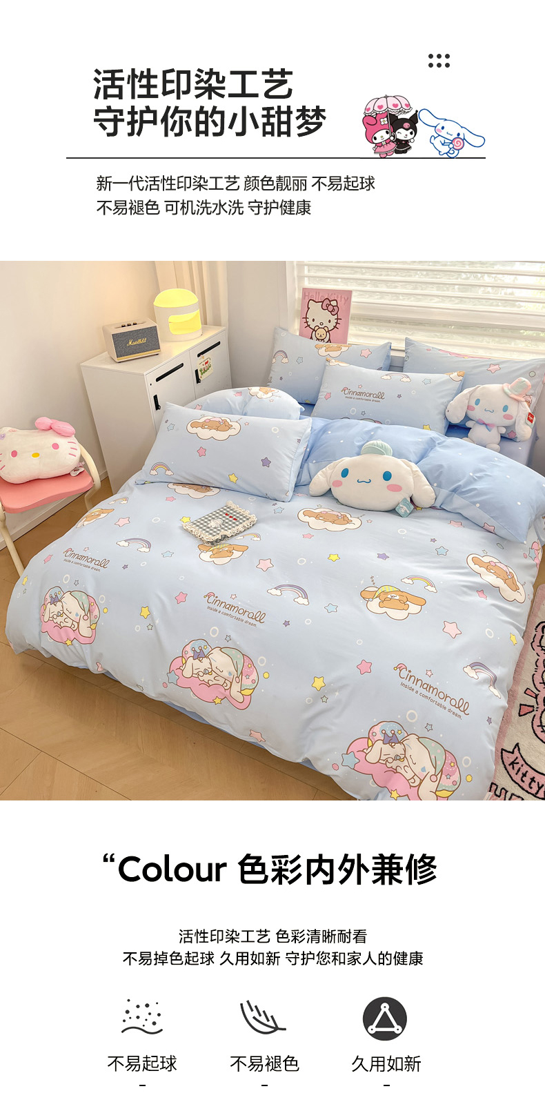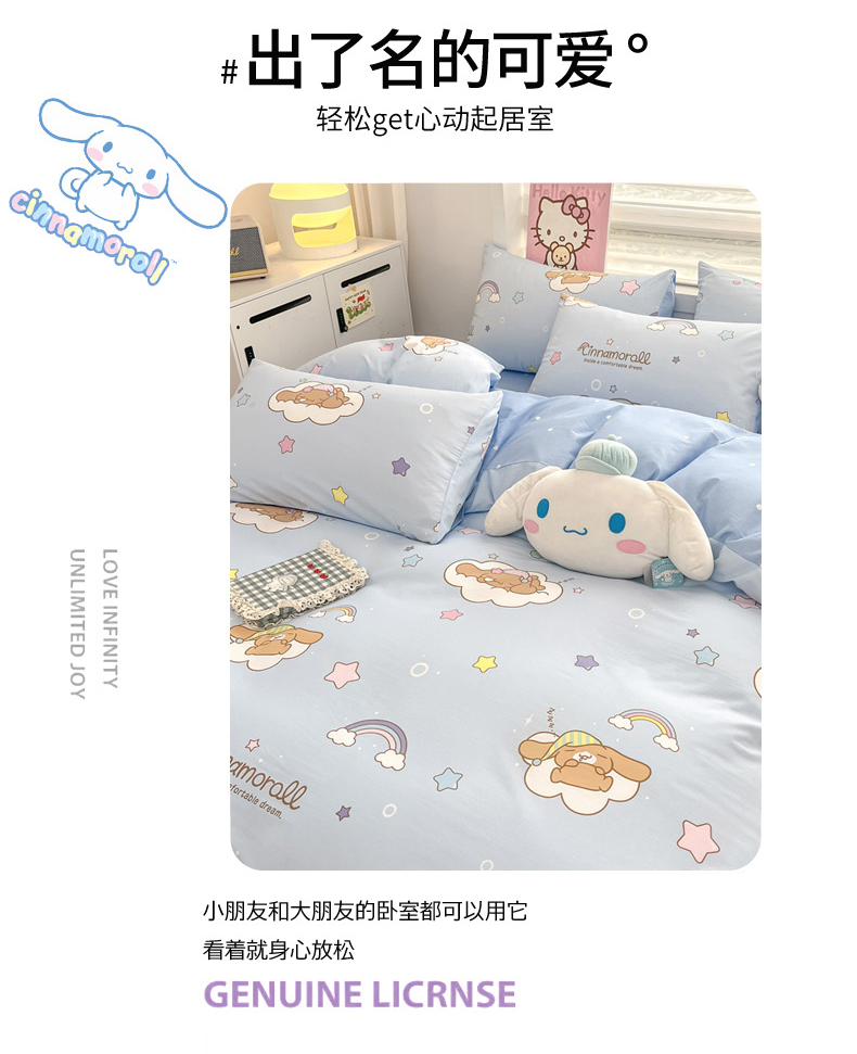 当前位置: 91家纺网 > 商品网购 > 床品套件 > 四件套 > 全棉普通四件套 > 暮思家居 2025新款正版授权三丽鸥小版全棉四件套系列(第二批) 彩虹玉桂狗