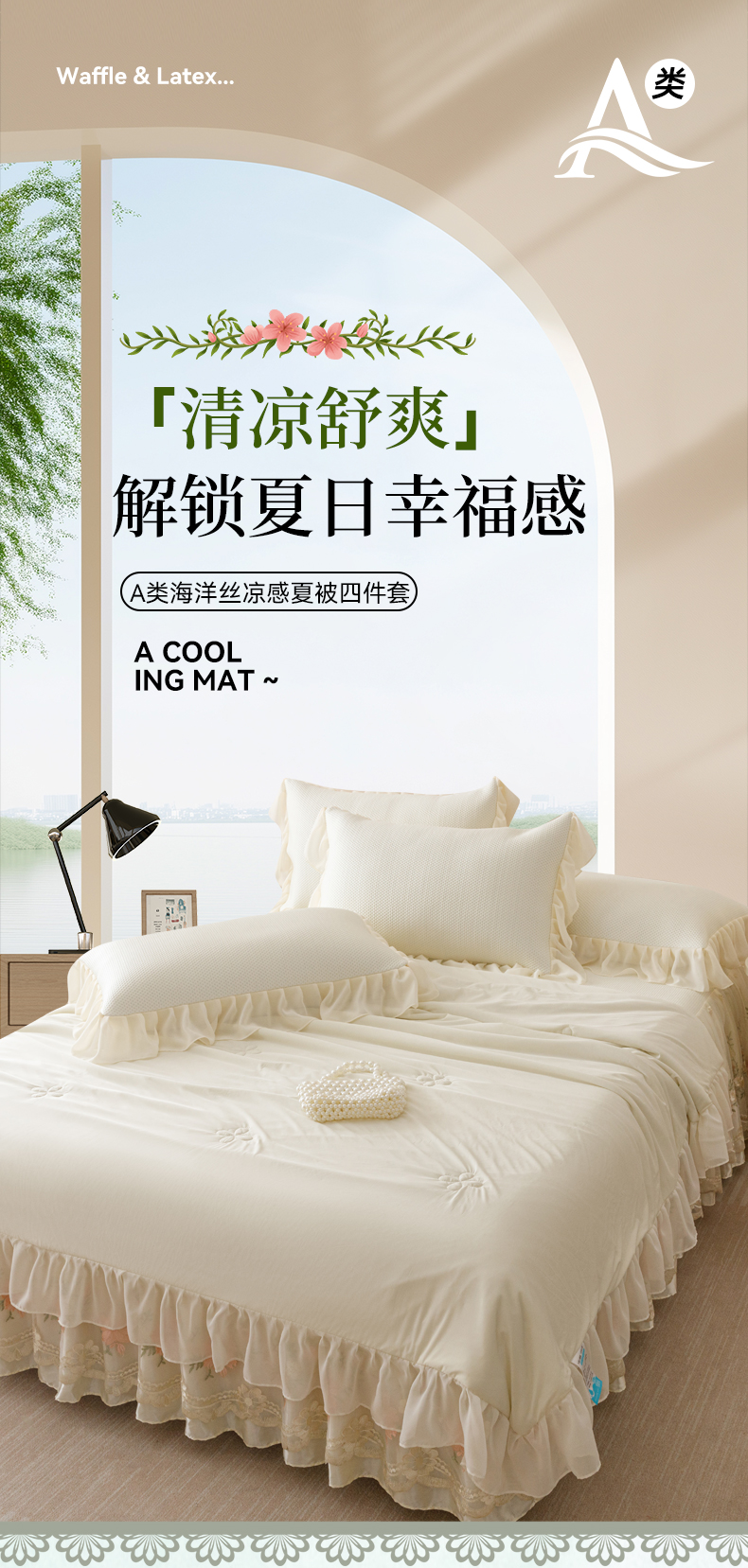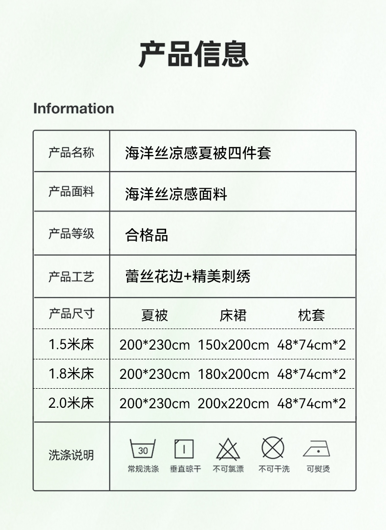 (总)好儿喜家纺 2024新款A类海洋丝奥德利夏被凉席四件套,橄榄绿,奶白,浅粉,浅蓝,浅绿