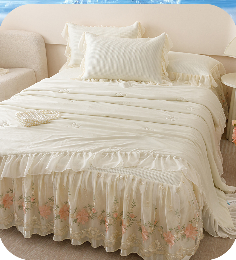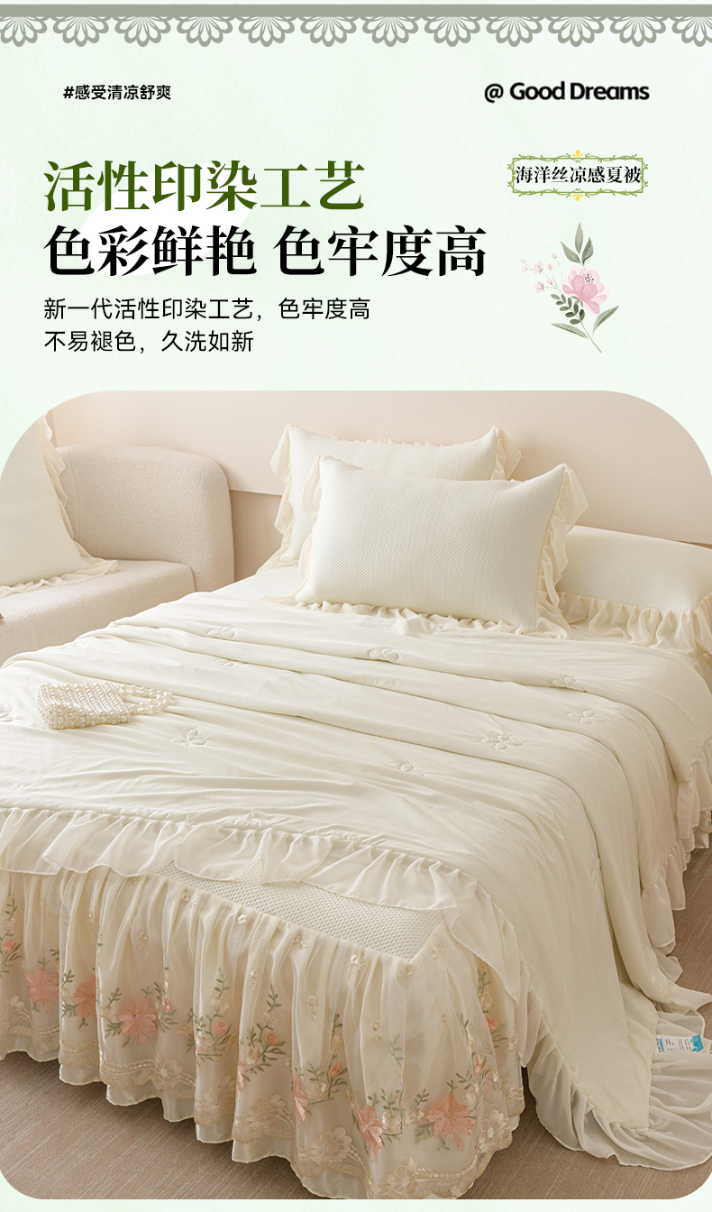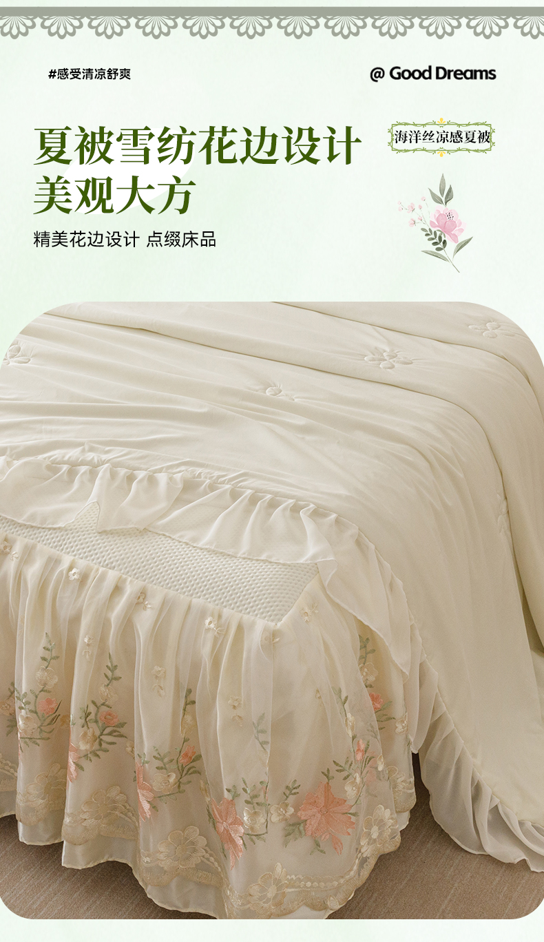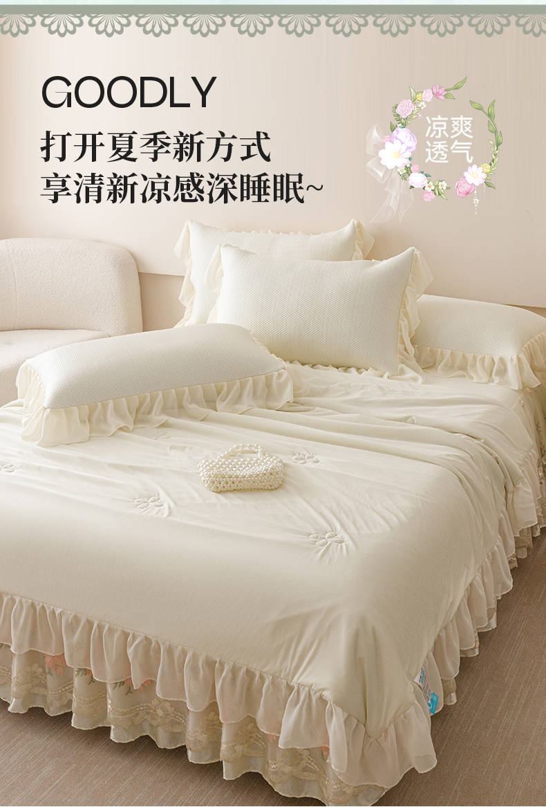 (总)好儿喜家纺 2024新款伊芙琳夏被凉席床裙四件套,浅绿,橄榄绿,奶白,浅粉,浅蓝