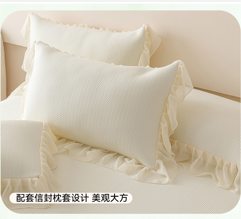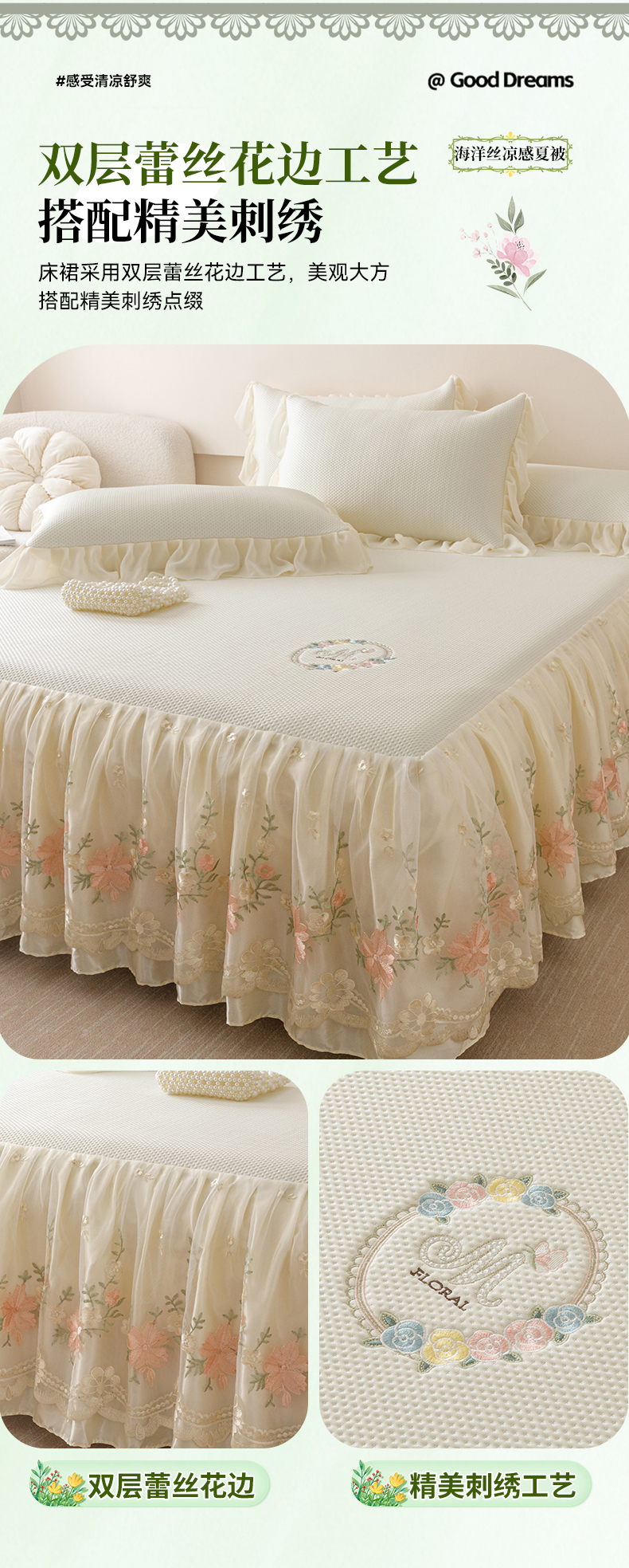 (总)好儿喜家纺 2024新款伊芙琳凉席床裙三件套,浅绿,橄榄绿,奶白,浅粉,浅蓝