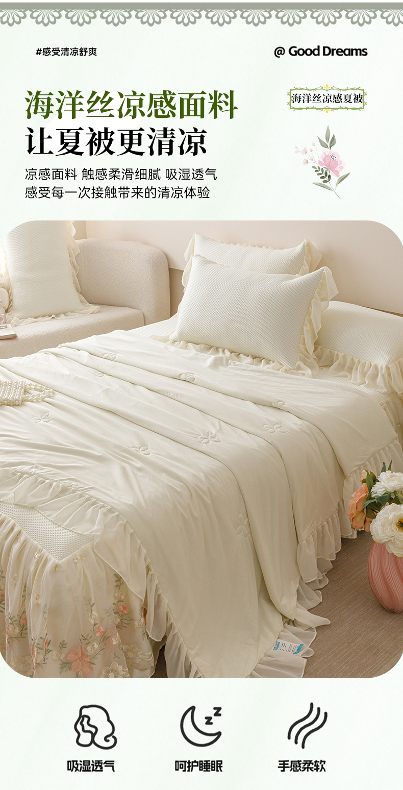 好儿喜家纺 2025新款海洋丝凉感夏被四件套(此款控价所有尺寸(劵后)利润不得低于50元) 奶白