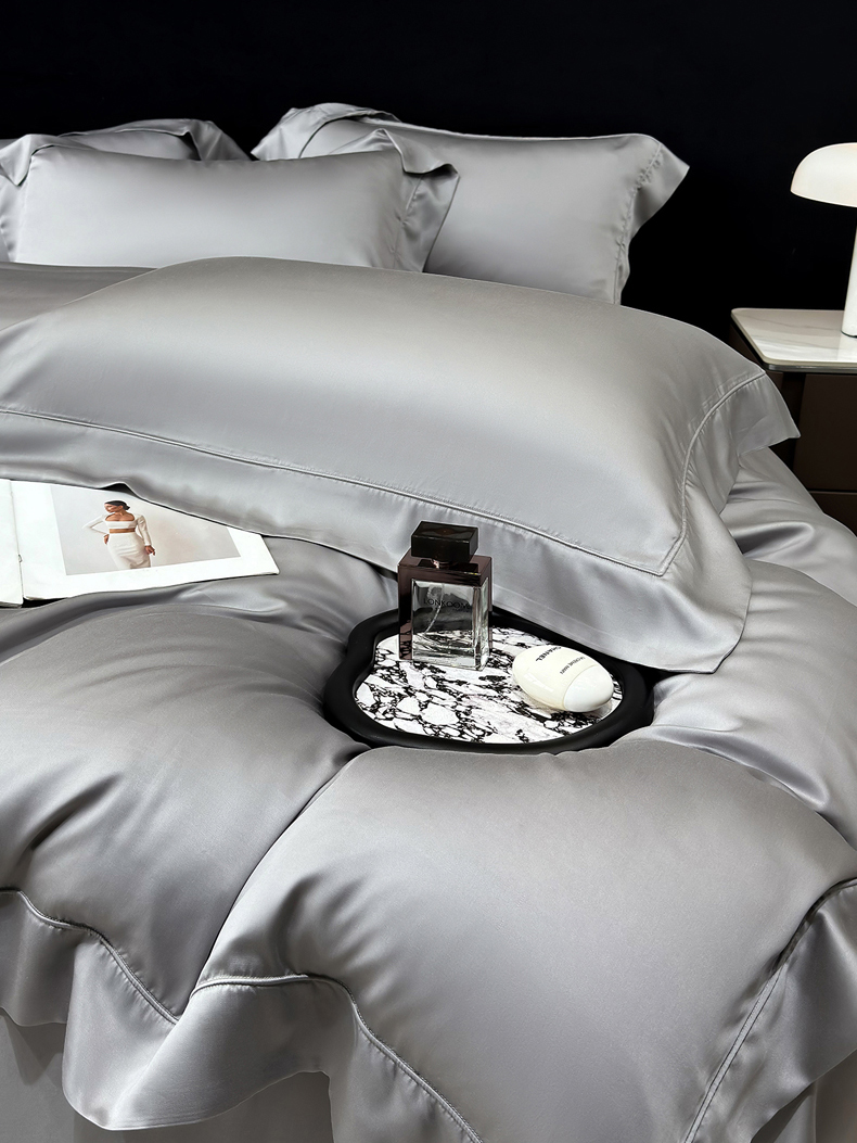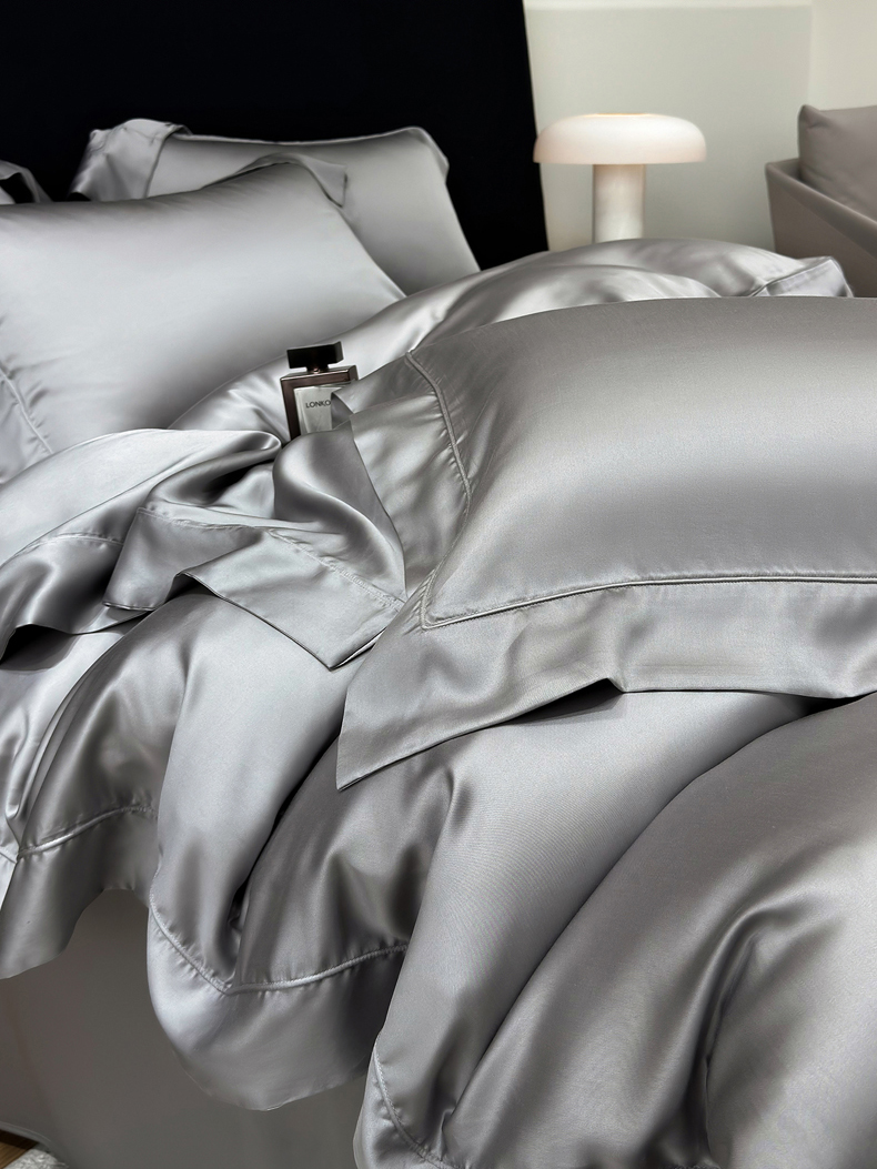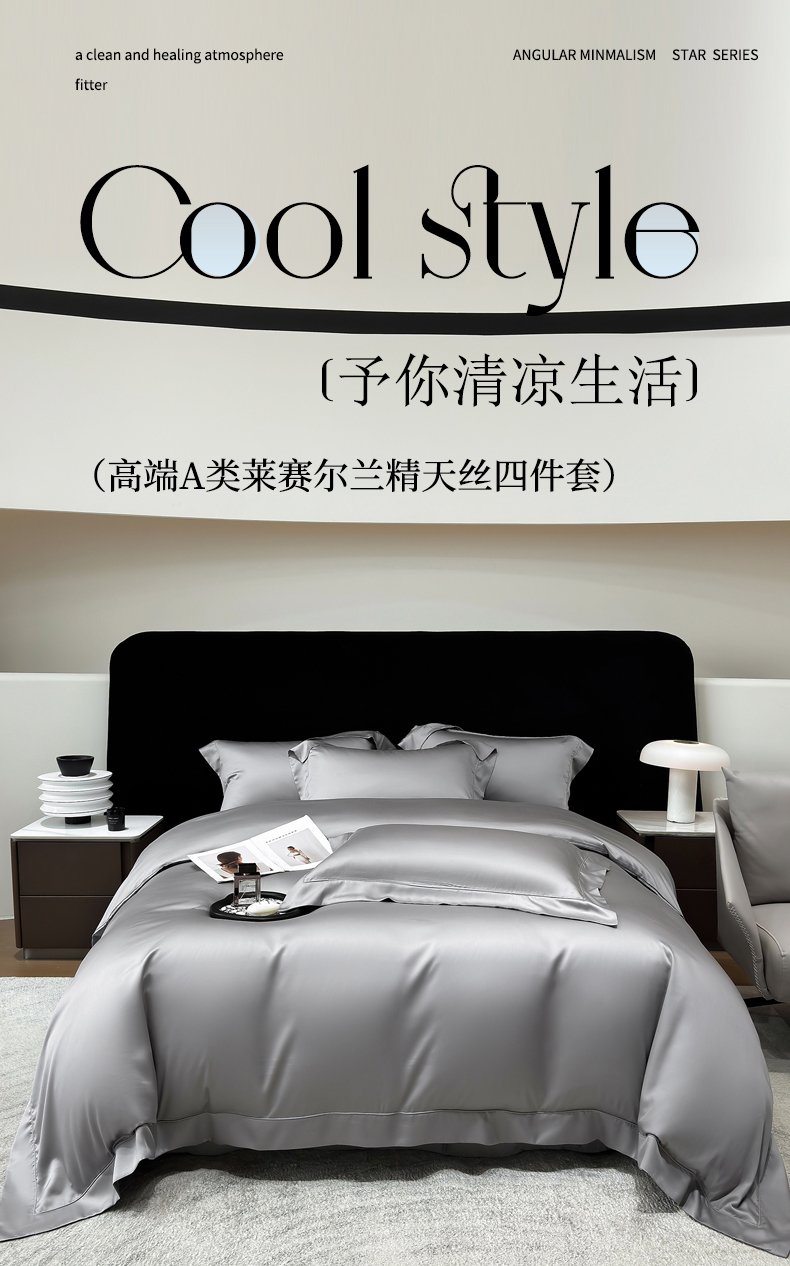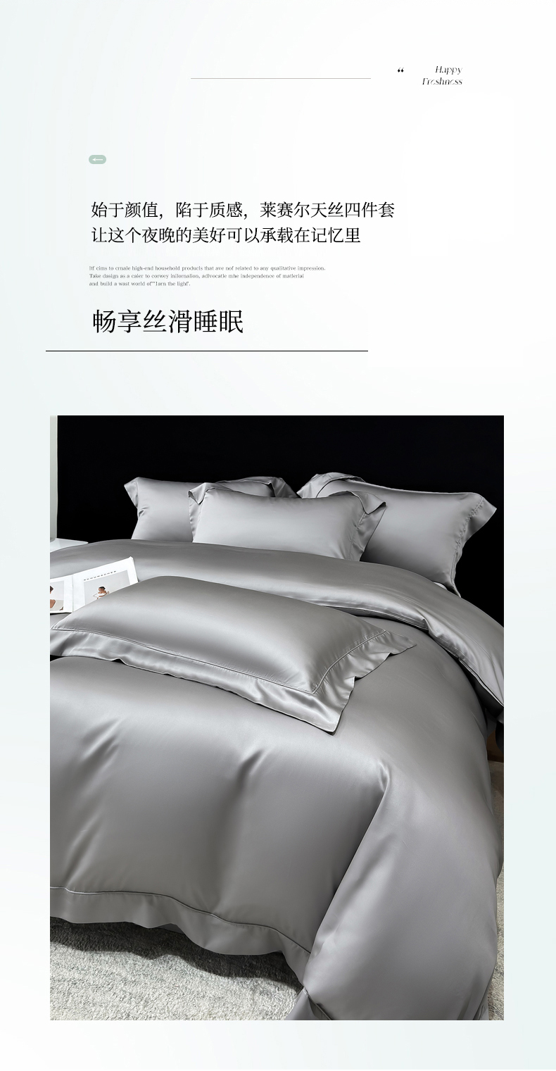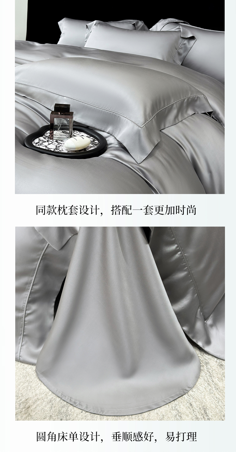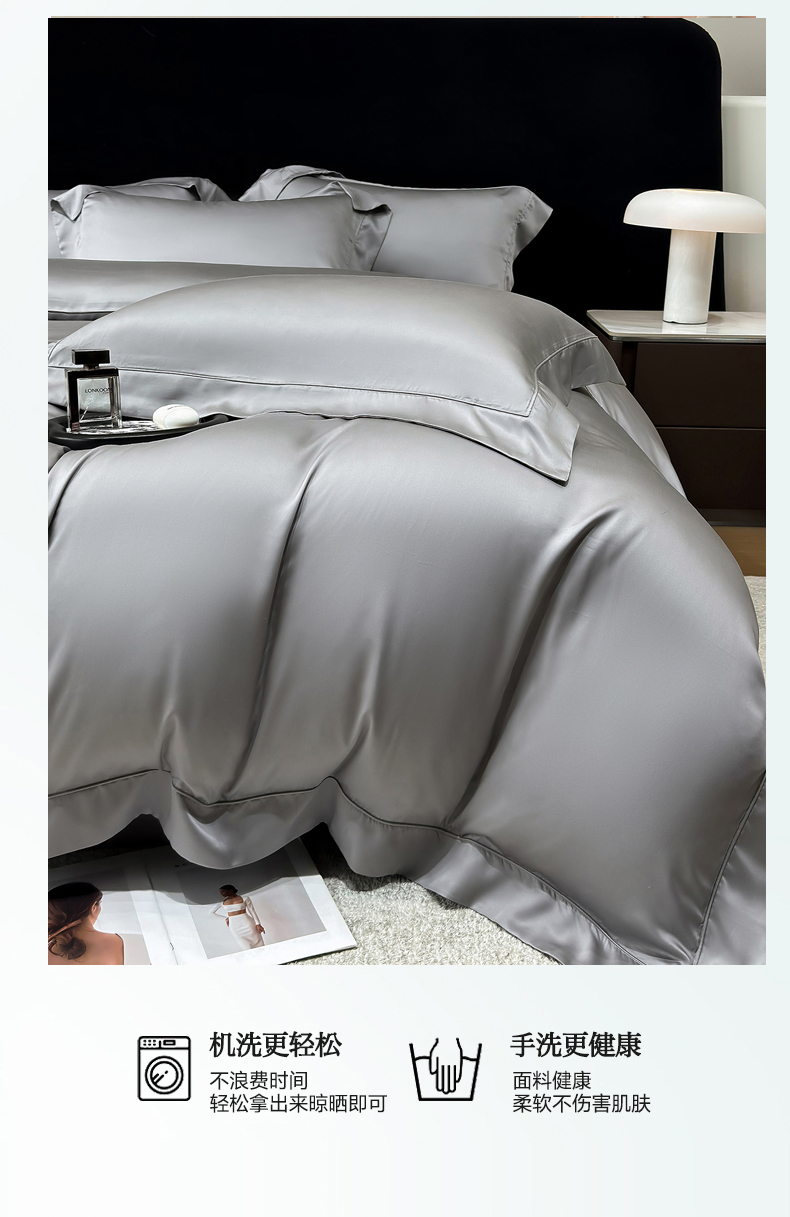 商品名称:星蕴家纺 2025新款奥地利兰精天丝莱赛尔纯色埋绳款四件套-莱恩 莱恩-炭灰色